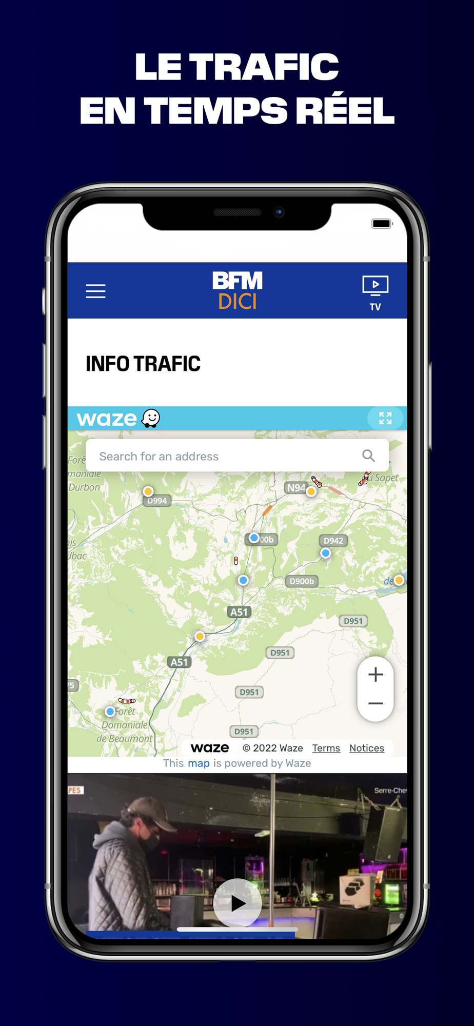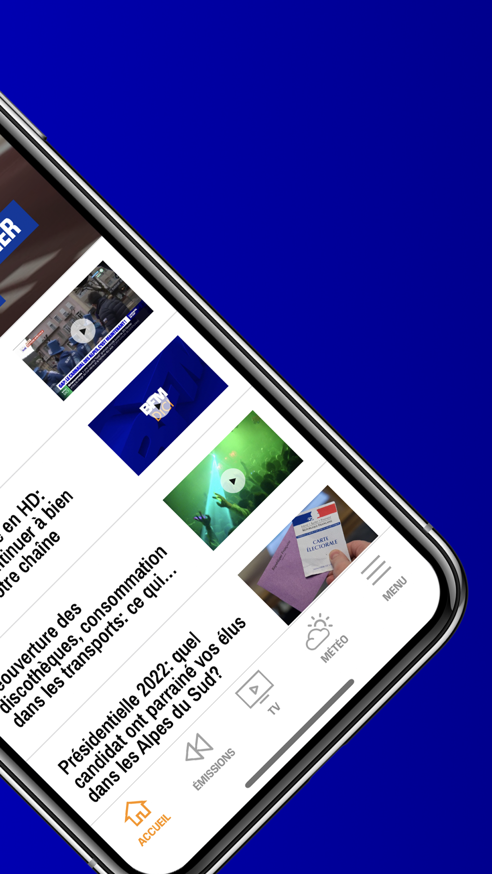 • Le menu qui rassemble le meilleur de BFM DICI dans votre application (Actualité, Vidéos, Sport, Immo, Info-trafic…)