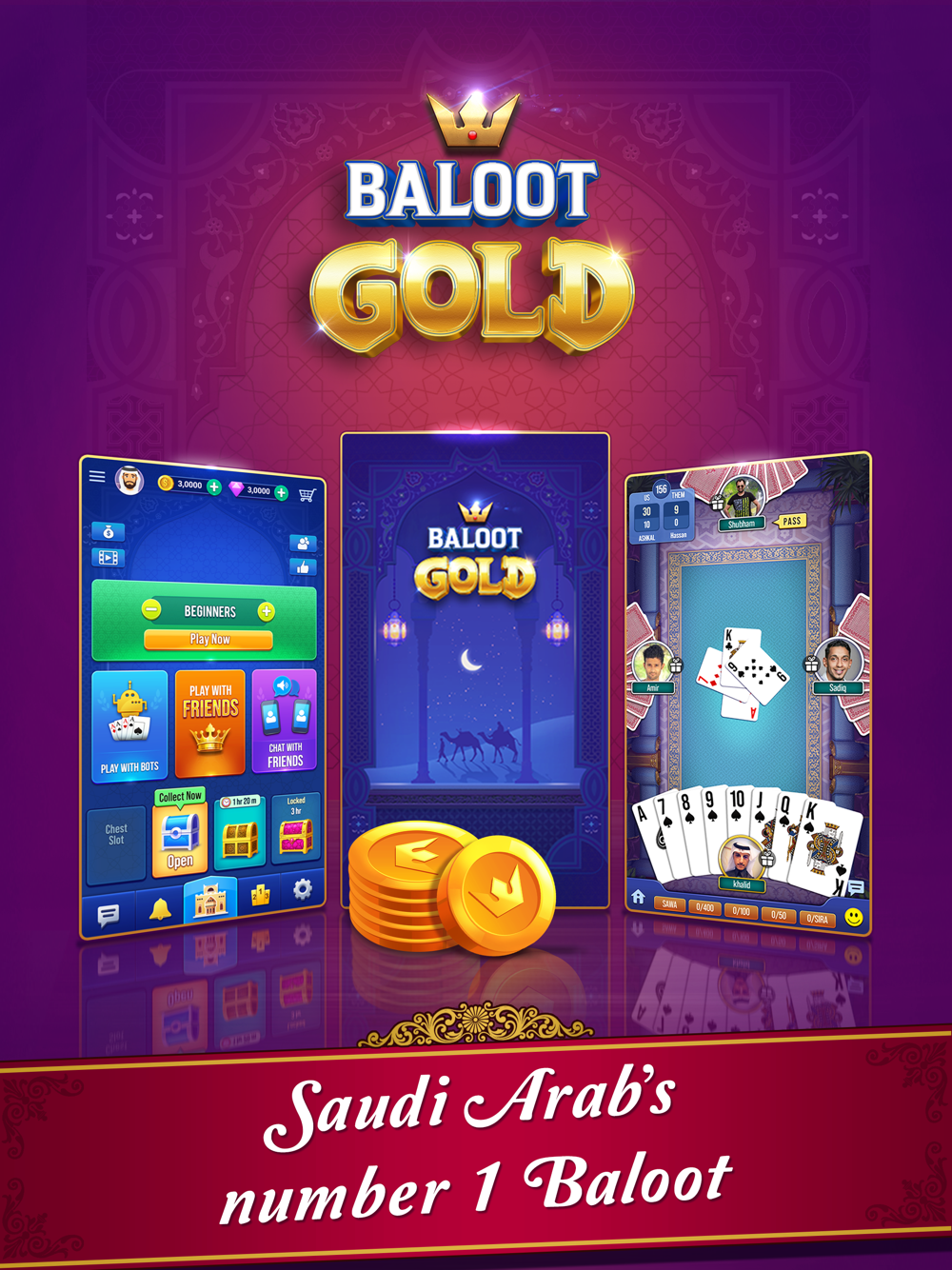 Baloot Gold offers a royal baloot experience with rich art, fun gameplay and smooth animations!