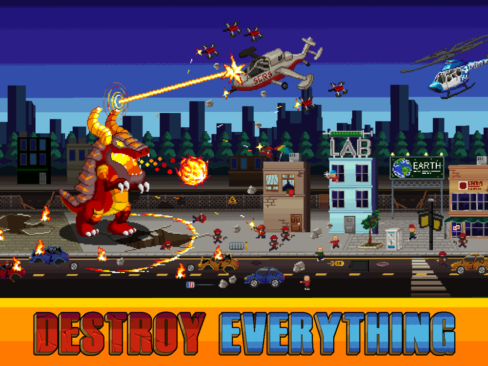Now you become that giant monster in Gigapocalypse, a 2D pixel art destruction game, inspired by classical Kaijū movies such as “Godzilla” and “King Kong” and the game classic “Rampage”.