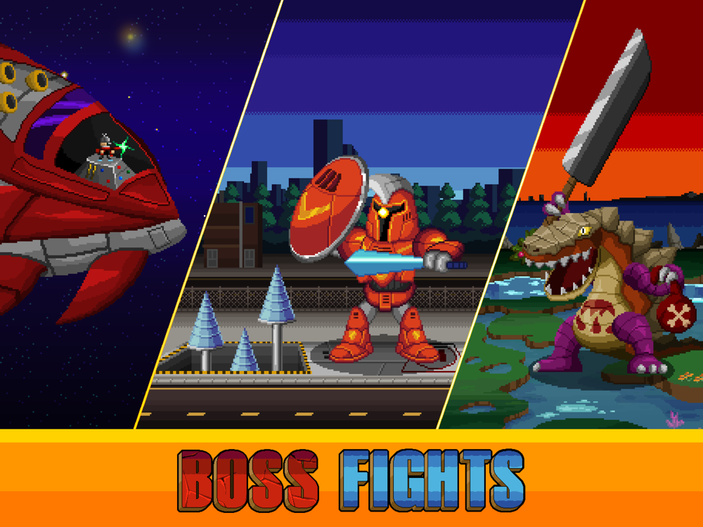With each try your Giga will become more powerful until you will finally make it to the diversified, epic boss fights that await you at the end of each level.