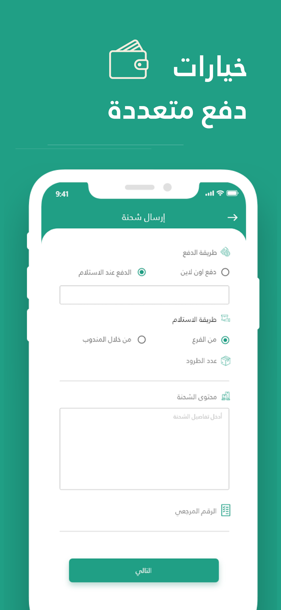 يمكن طلب الشحن من خلال التطبيق وسيقوم مندوبنا باستلامها منك في موقعك ويمكنك تتبع الشحنة حتى تسليمها.