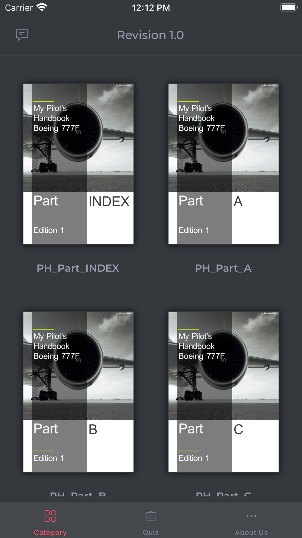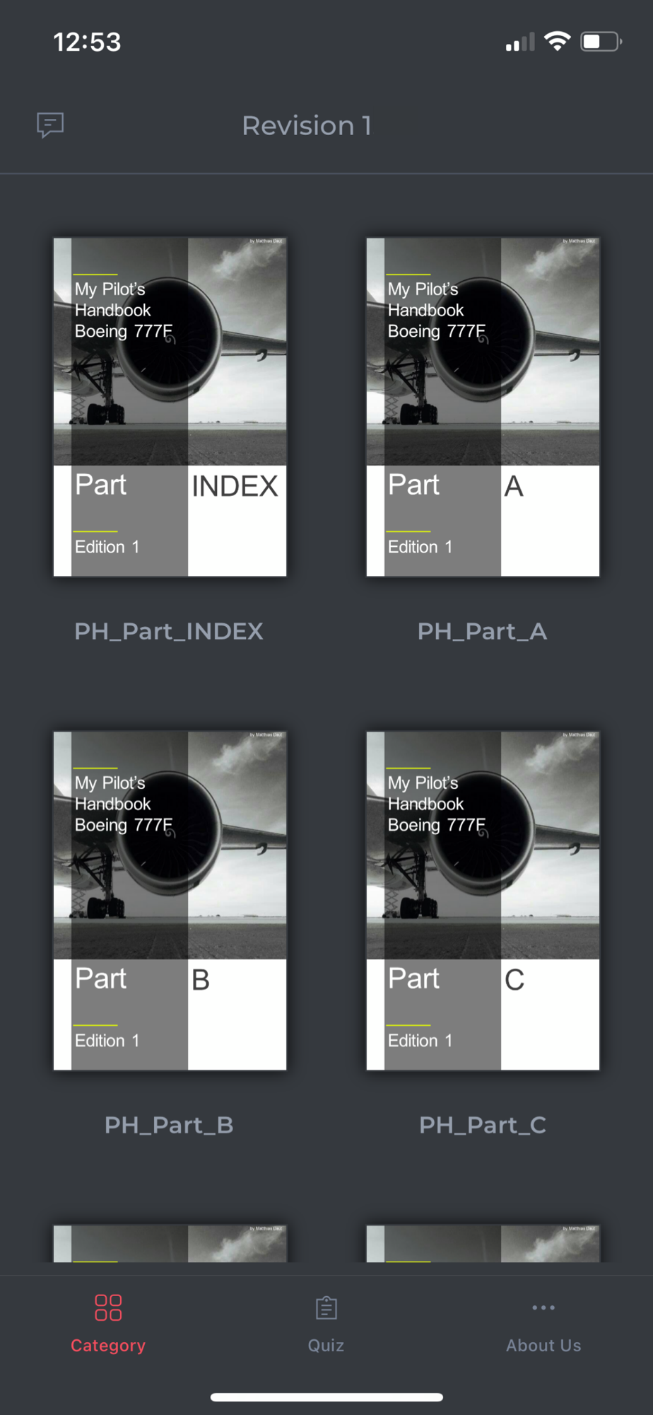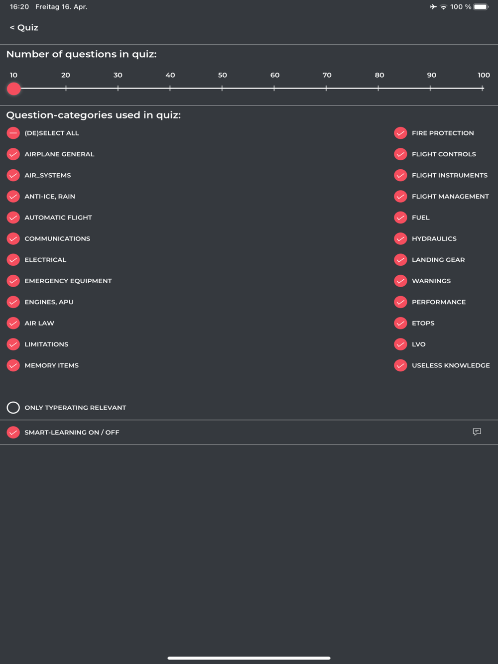 In addition, a categorized quiz is included, using flip cards to allow for repetition and learning as well as a toolbox for pilots (crew rest calculator, altimeter correction, etc.)