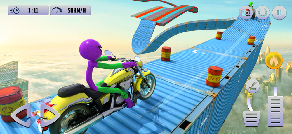 It's time to prove your bike rider skills on zigzag paths, vertical ramps, and sky high roads. So, get behind the wheels of your gt bike and perform extreme stunts along with some other types of superhero gt racing stunts. You have 3 different mega ramp modes as Infinite Mode where you will drive motorbike in endless racing mode to perform crazy stunts with a variety of bike transformations. GT Racing Mode will give you the amazing experience of gt stunts with your bike trail experience. Perform stunt jumping with best stunt challenge in stunt driving games. Become a best bike racer in this superhero ramp bike stunt game. In Mega Ramp Mode you will race your gt bike with speed racing to go with high sky jumping stunts on impossible ramps. Become a crazy bike driver and perform all the challenging ramp stunts in this bike simulator game to ensure that you are the best bike stunt master.