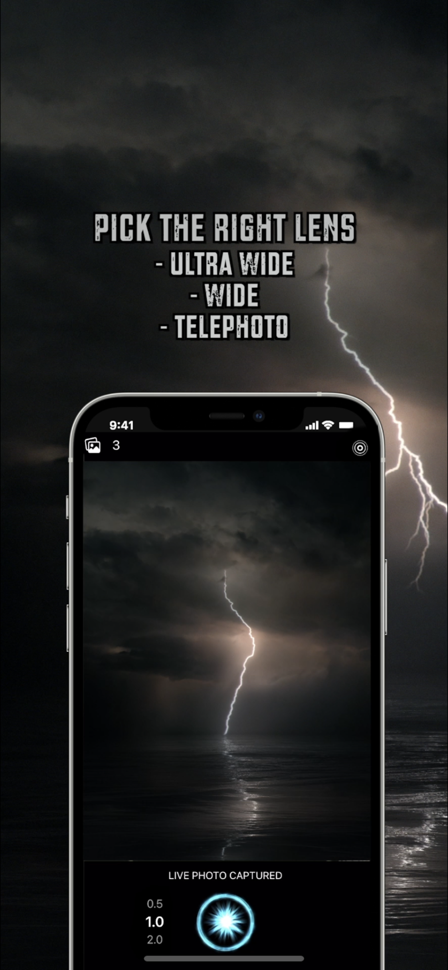 ThunderCam is a camera app that automatically triggers your camera shutter when lighting occurs in the sky. Put your iPhone on a tripod, point it at the sky and let it do the work! Shutter is released at significant change of brightness between following frames.