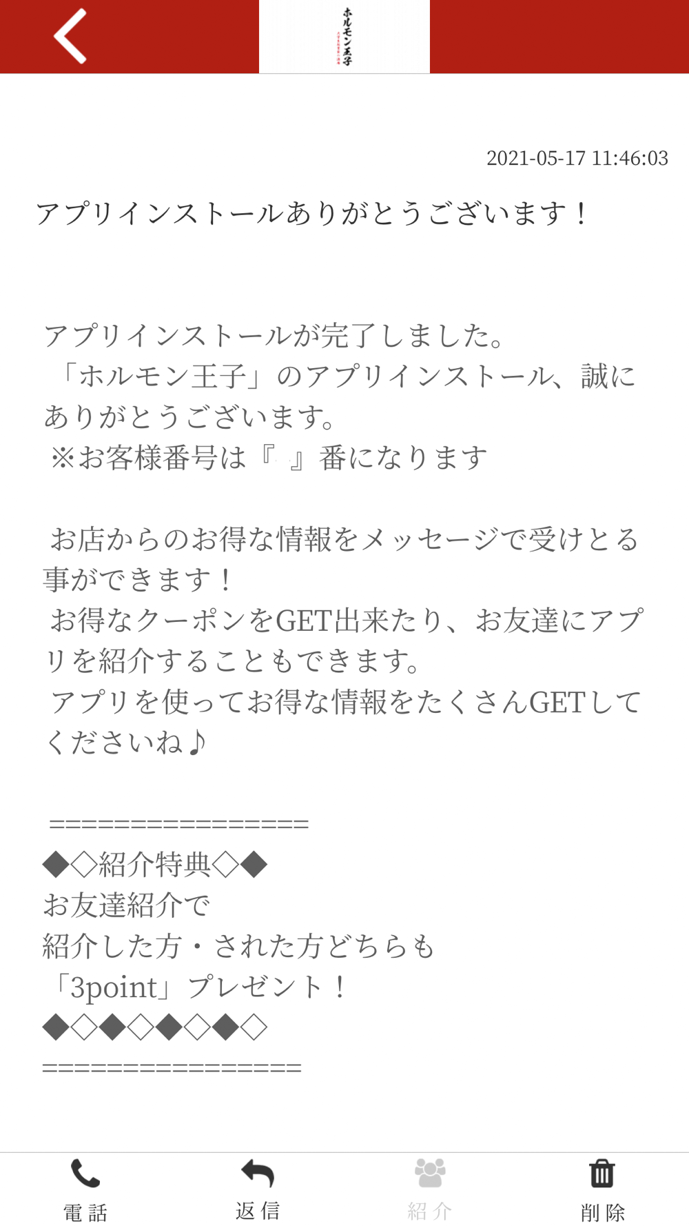 ホルモン王子のアプリをSNSを通じてお友達に紹介する事ができます。