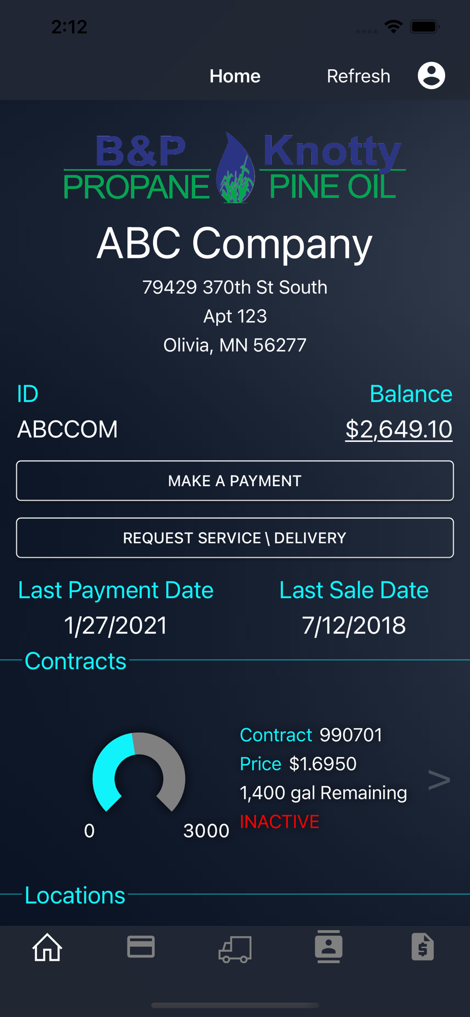 Information at your fingertips! This app gives you direct access to your account balance, location and contract information. It also gives you the ability to store and process payment and request service work and deliveries directly through the app.
