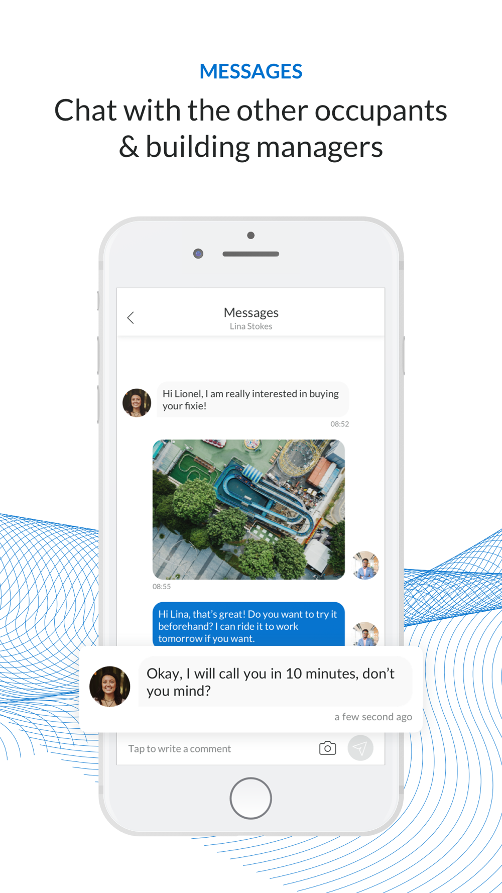 • interact with the occupants of the building via messenger, the forum and classified ads