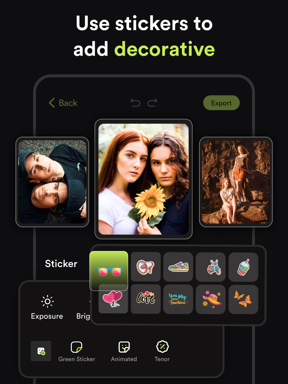 Use any background videos from your gallery or choose colors and scenes in the background of the animated stickers.