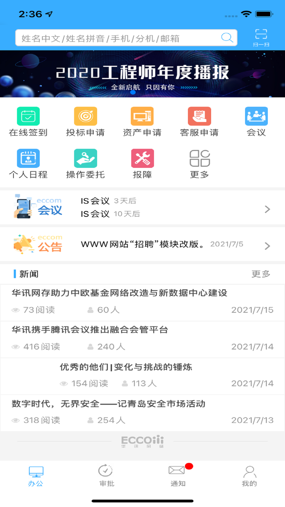 “掌中华讯”app也是提供给华讯员工的一个有力的工具。IT工程师们即使远在千里之外的客户现场,也能通过app连接公司,及时处理工作流程。