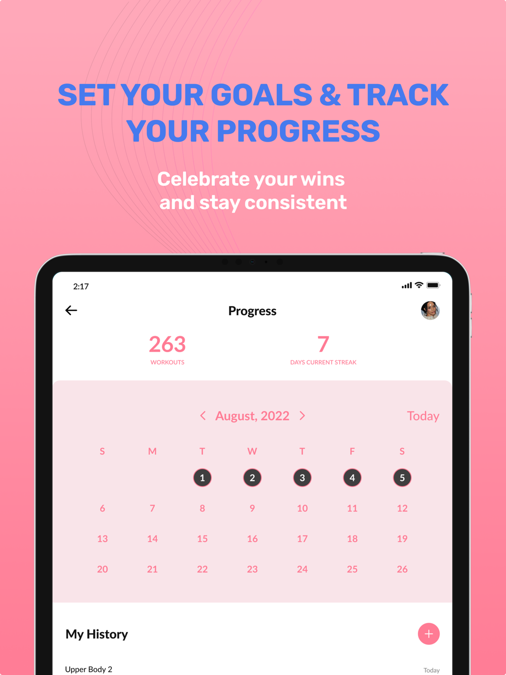 - Tracking tools to log physical changes & workout streaks to stay on track