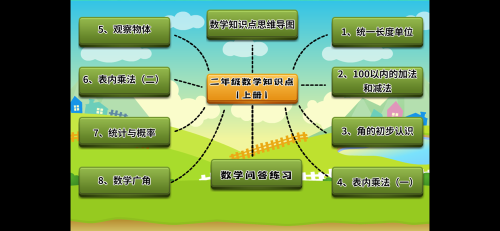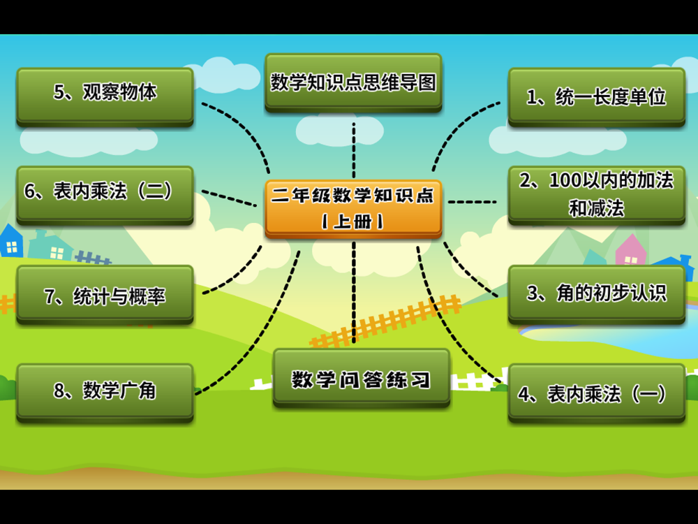 此应用将小学生二年级数学的知识点以思维导图的方式展示出来,方便家长辅导孩子学习数学的知识点。
