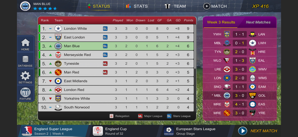 After tough weeks, advance from the lower leagues to the upper leagues. Every season, join the league's national club cup and After a good season, get the chance to appear in the league of stars!