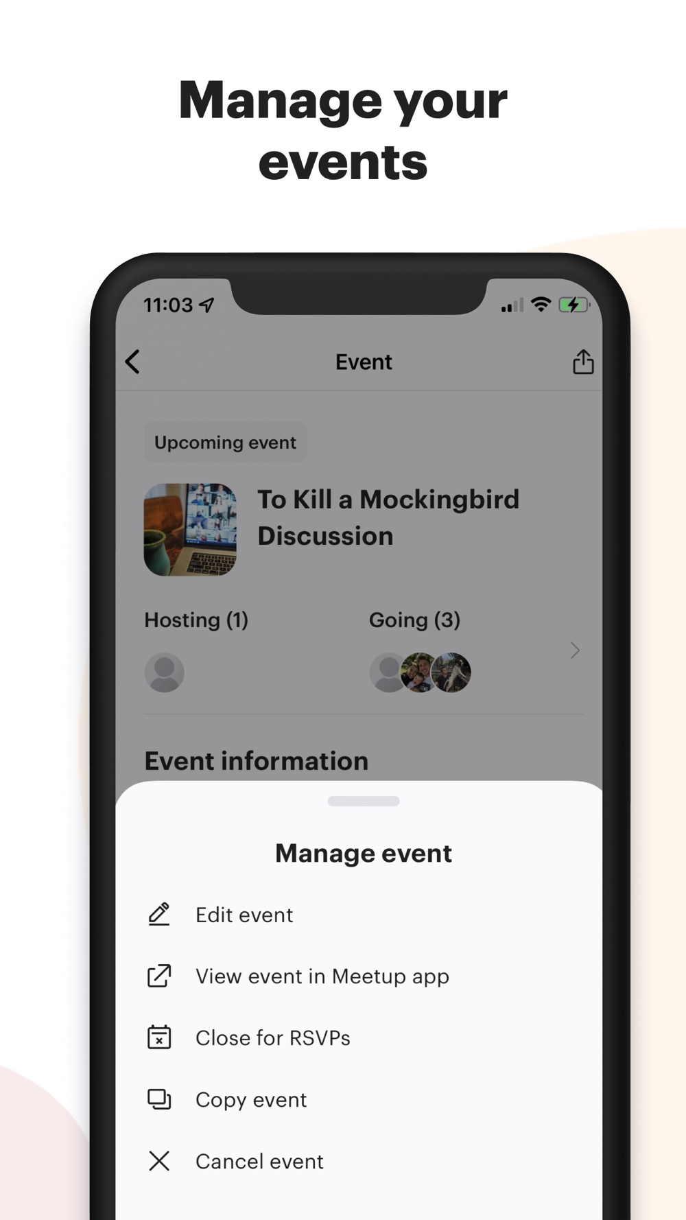 Use the Meetup for Organizers app to: