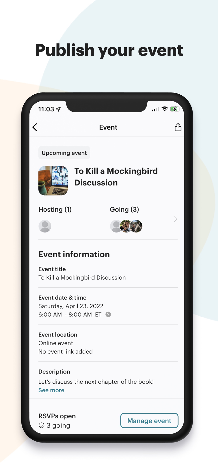 • View upcoming, drafts, and past events