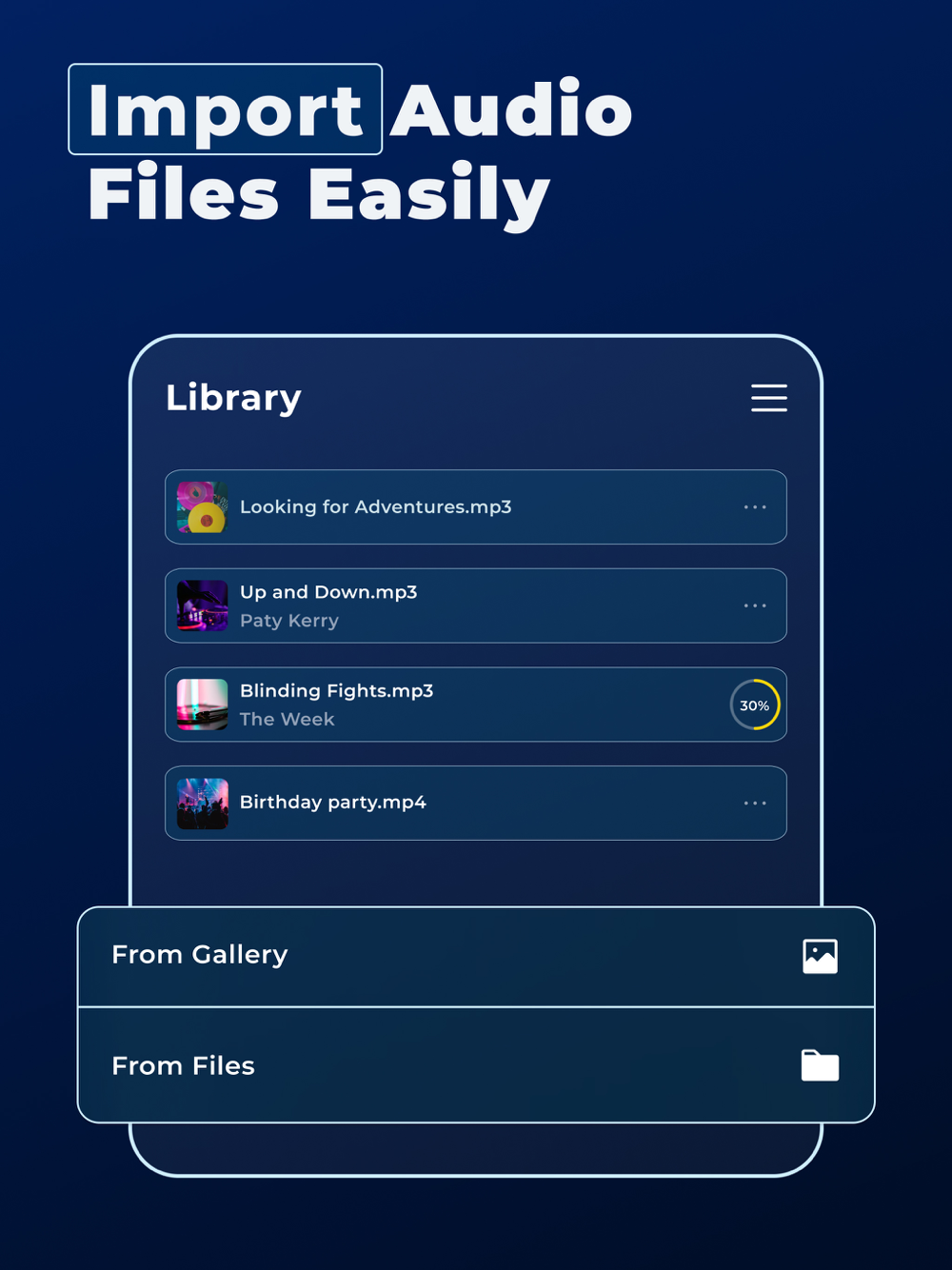 Generated vocal and backing tracks can be saved to files as mp3 or exported to the other applications easily. Built-in player allows you to switch from vocal to backing tracks simultaneously.