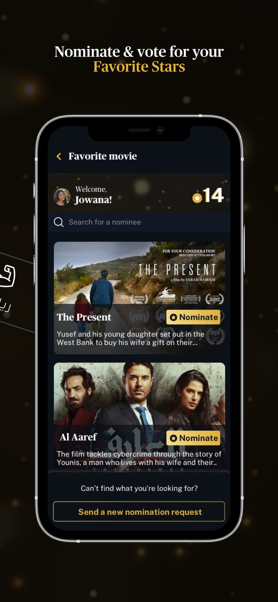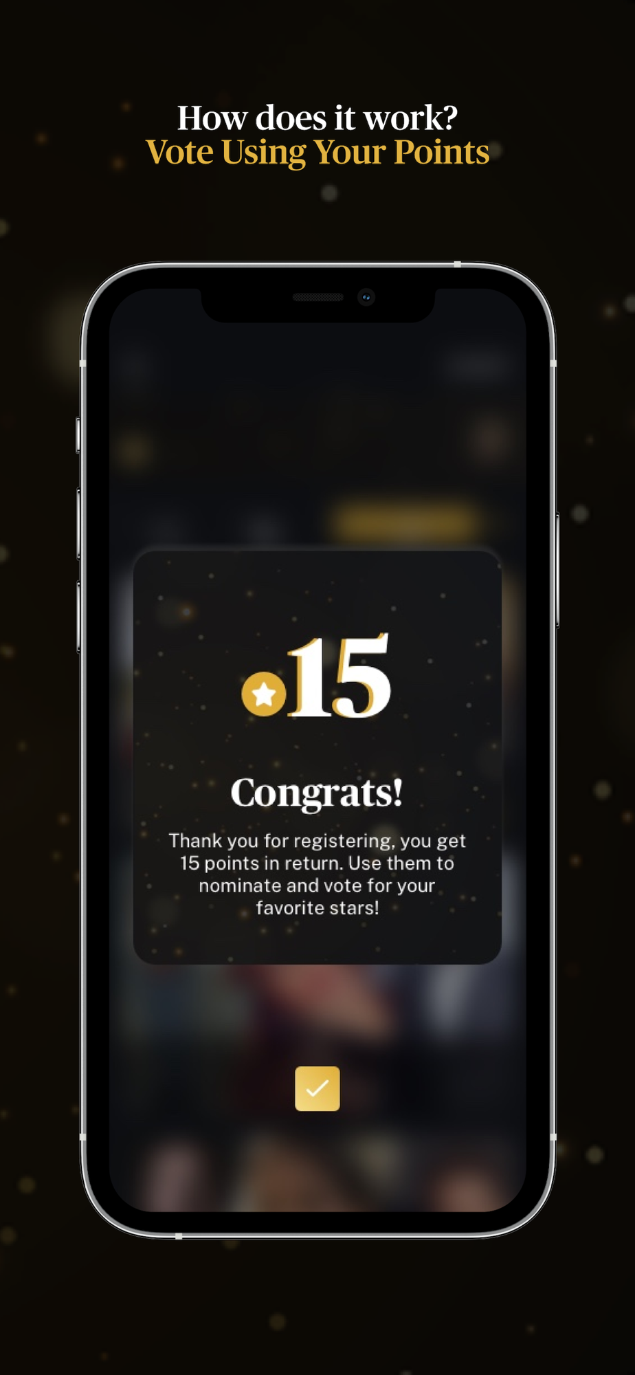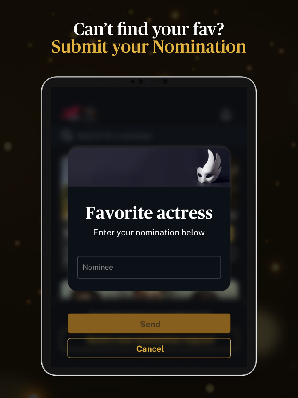 The audience nominates their favorite star for each category, where the user will see a list of names to nominate from.