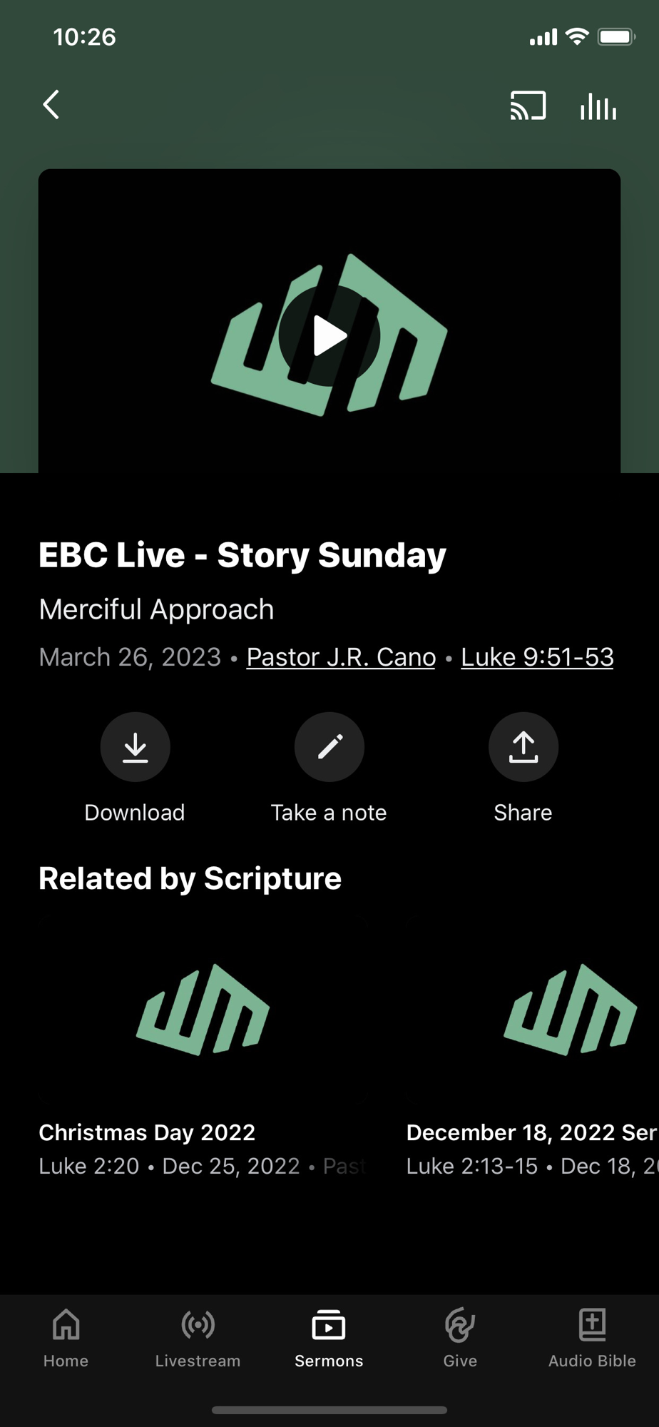 This app will help you stay connected with the day-to-day life of Eastmont Baptist Church. With this app you can: watch or listen to past messages; stay up to date with push notifications; share your favorite messages via Twitter, Facebook, or email; and download messages for offline listening.
