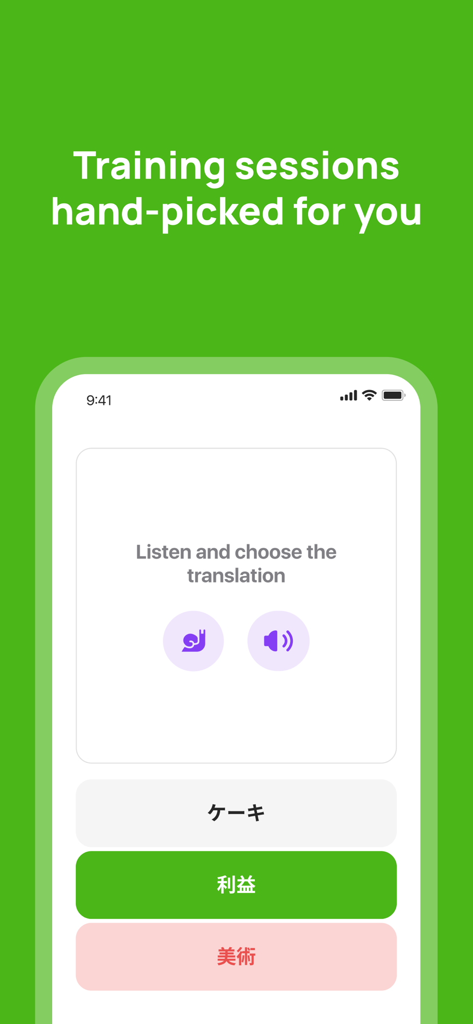 Our word-building exercises activate your visual memory and improve your language skills. Get one step ahead of everyone who studies Japanese.