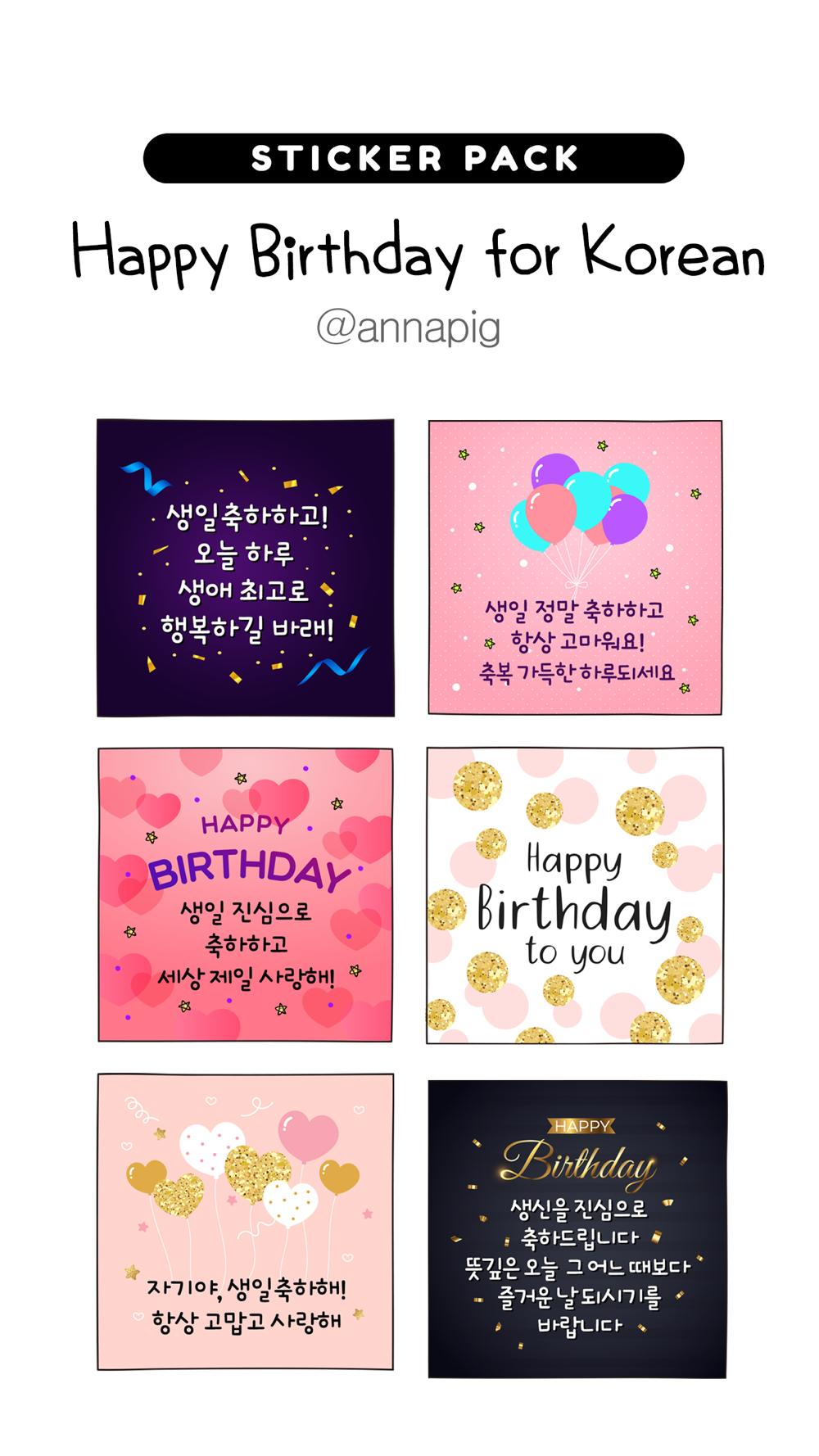This sticker pack includes 24 expressions most commonly used words in Birthday.