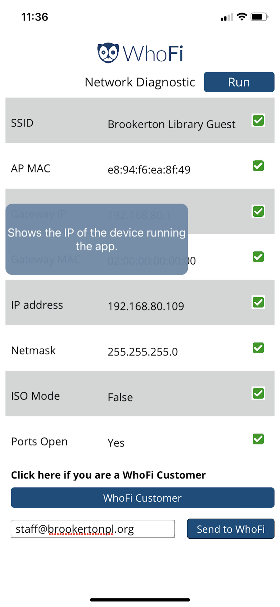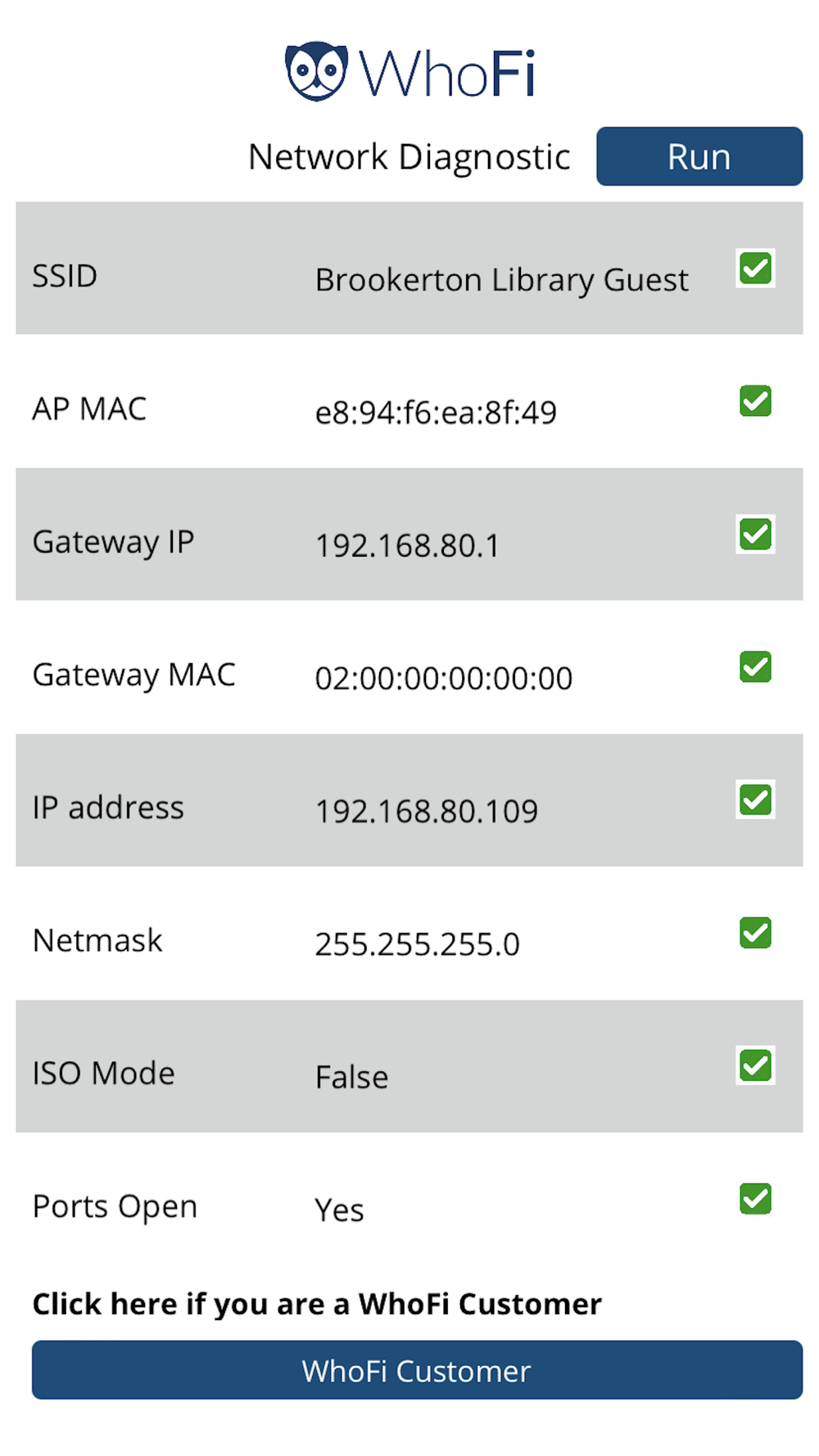 The Diagnostic App will analyze your network to determine the best fit with the WhoFi service.