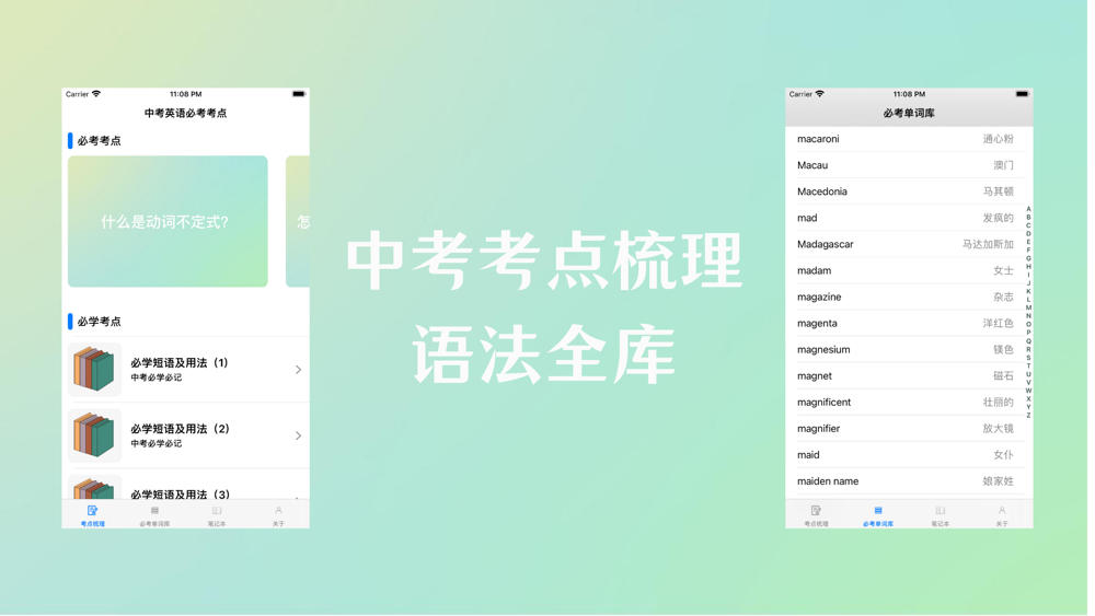 我们提供的中考核心的考点梳理以及核心的单词和短语库