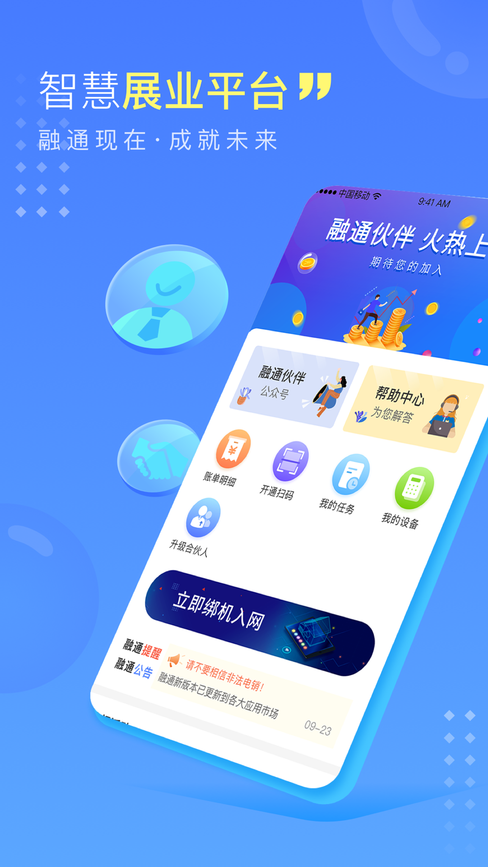 融通伙伴APP,一款服务于商户用做数据管理和业务拓展管理以及快速入网的软件APP,便于商户查看管理账单等信息,提供其他优质服务。