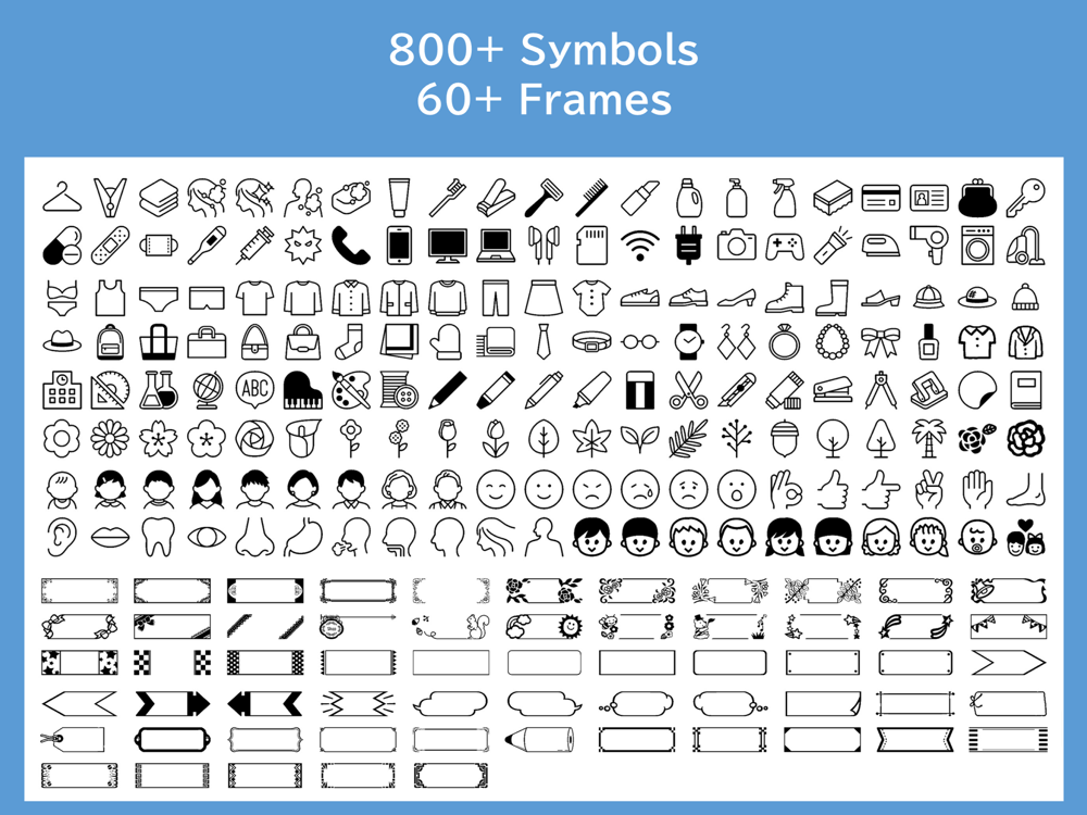 - Rich pre-install contents: Create and design your labels with a wide variety of symbols, frames, and shapes.