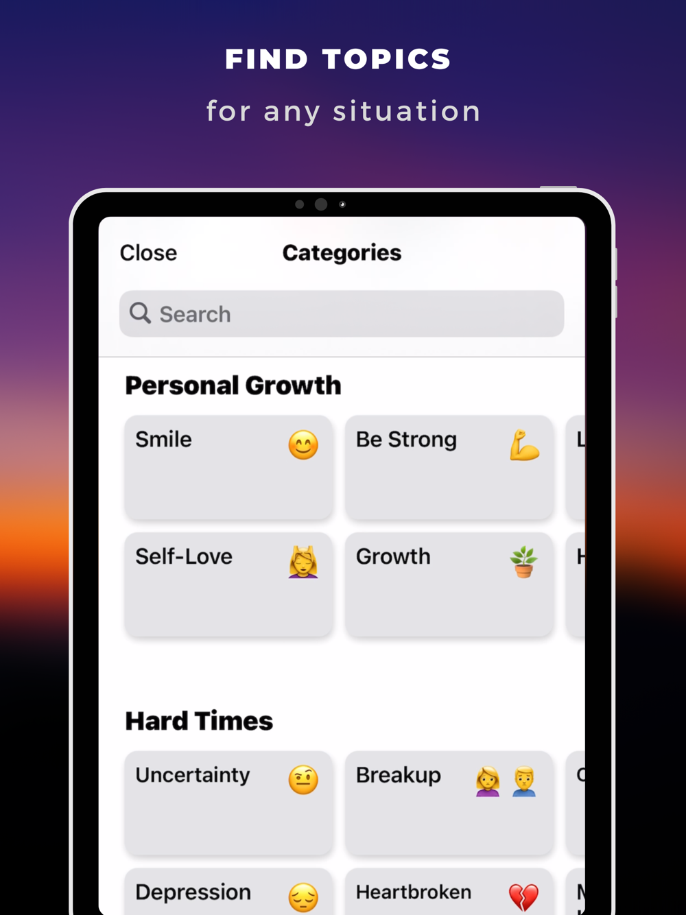 The app is extremely simple to use and you are able to customize the theme and add soothing background sounds to make it a more personal and enjoyable experience. It includes a wide range of topics such as love, self-esteem, relationships, and dealing with stress, depression, as well as a selection of carefully designed themes to choose from which are all updated frequently.