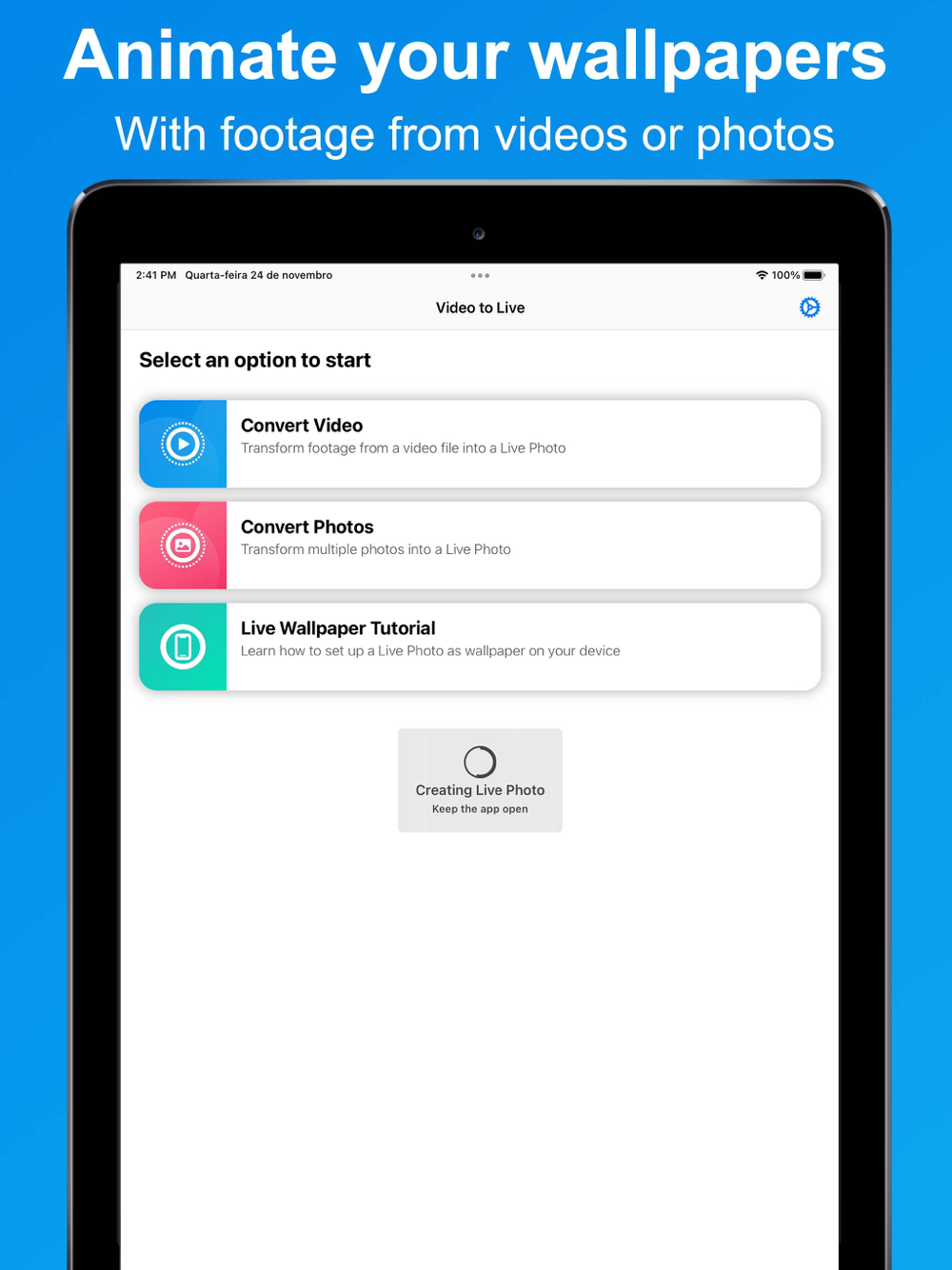 Did you know you can animate the wallpaper image on your lock screen? Video to Live allows you to transform any video or sequence of pictures into a Live Photo to create the perfect wallpaper!