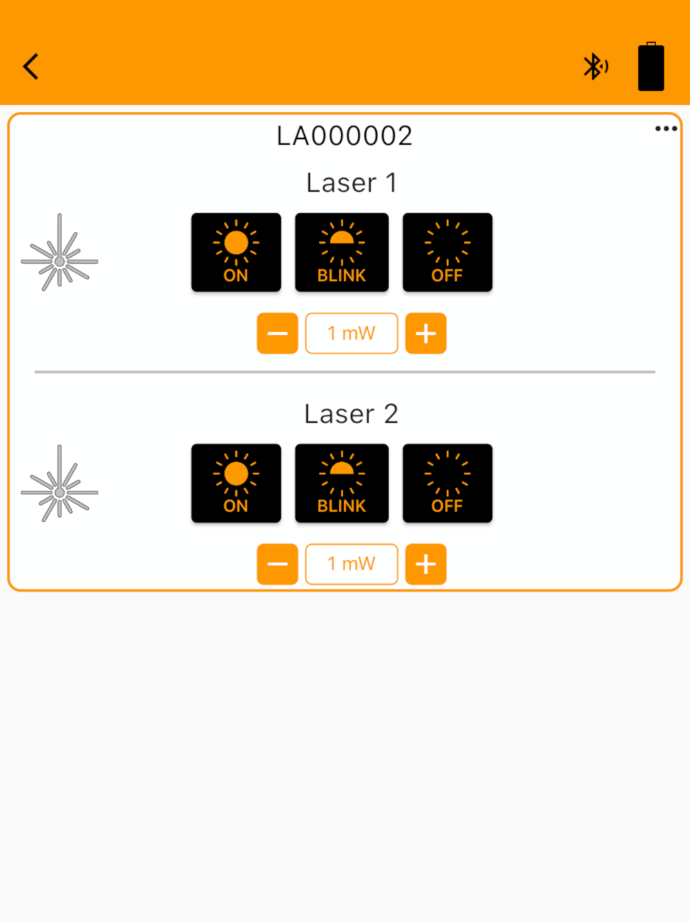 allumez un laser, faites les clignotez, ajustez les vitesses de clignotement, sécurisez le lieu d’émission en éteignant les sources laser à distance (chez l’abonnés par exemple), économisez votre batterie en éteignant automatiquement votre appareil lorsqu'il n'est pas utilisé via l’application EASYTOOLS.