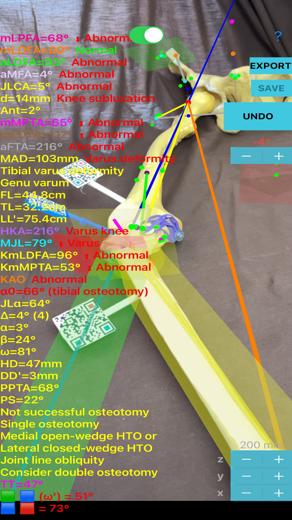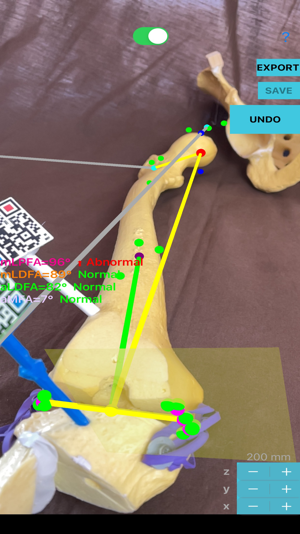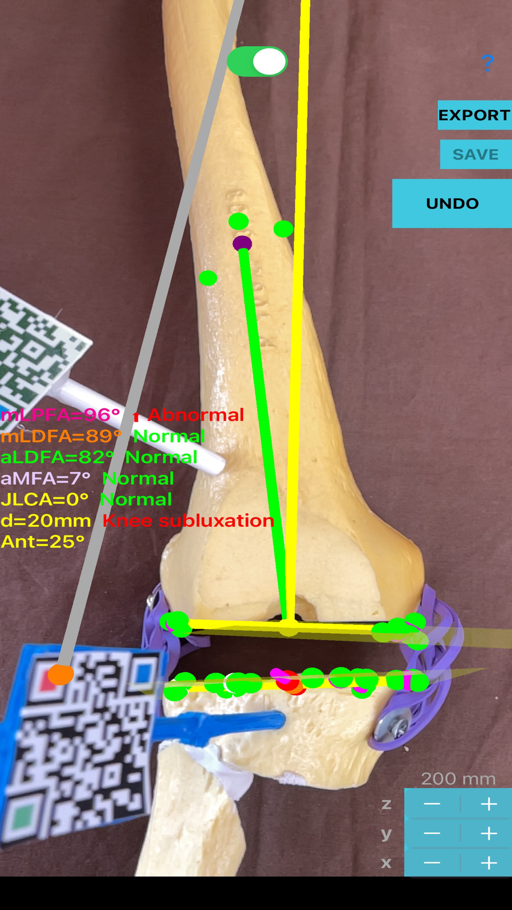 - The app works as a whole interchangable interacting unit in AR which allows to modify in instant parameters, enabling user to achieve an optimally balanced leg alignment.