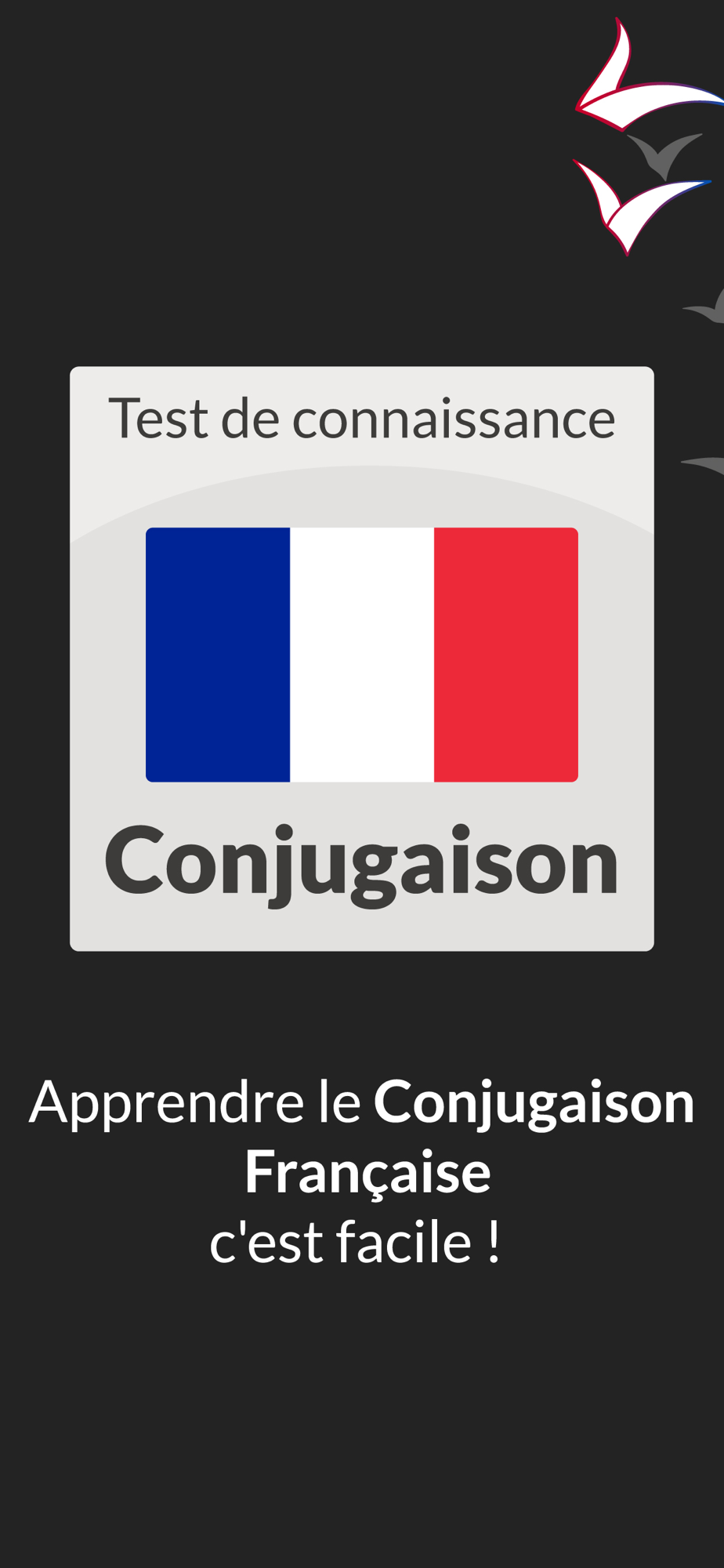 Test and Questionnaire in Conjugation is the best way to test your level in Conjugation, the French language, with a huge number of different questions on conjugation, for all levels with multiple choice.