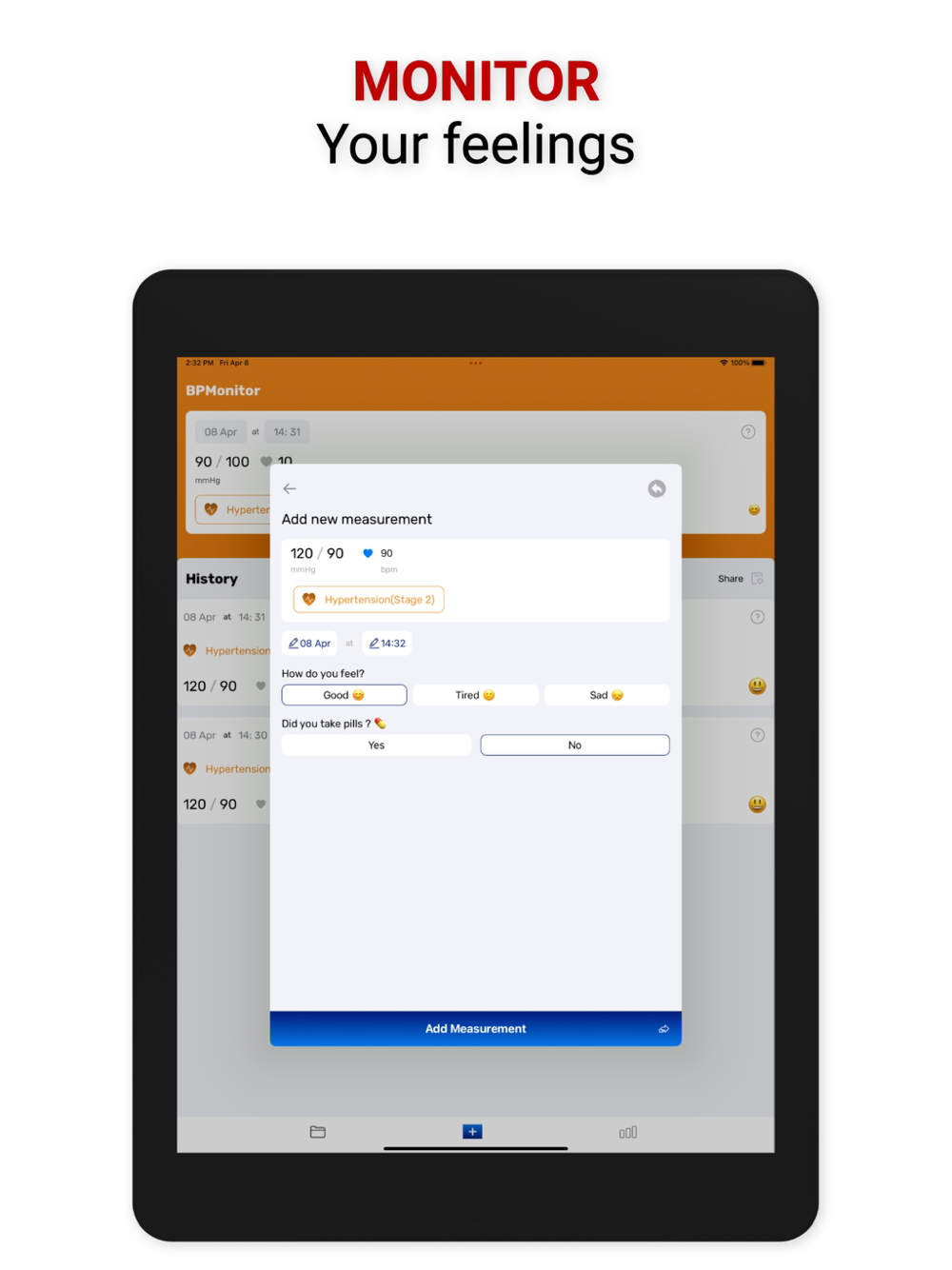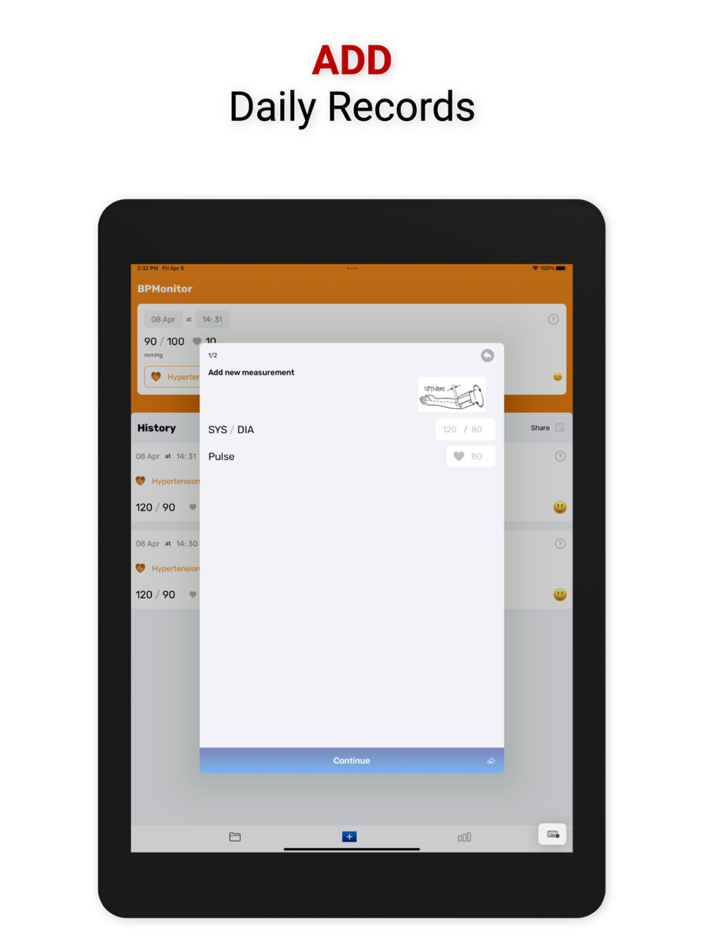 BPMonitor app will help you to record your blood pressure easily