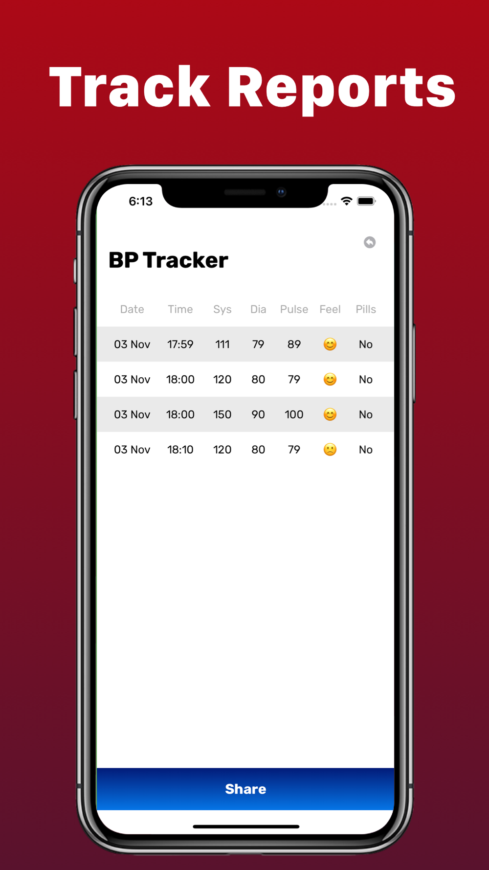 You can easily enter the values and your mood and medicine details and it will help you to detect the stages of your blood pressure