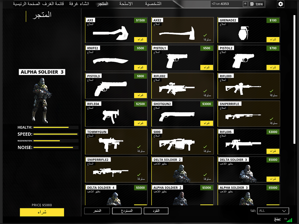 لعبة حرب الصحراء اونلاين اقوى تحدي عربية اونلاين جماعية بين يدك الان ،. كمحارب خاص يستخدم البنادق الآلية او المسدسات وأسلحة الحرب الحديثة الأخرى في ألعاب الرماية الجديدة.مابات مختلفة( مصر، البركة، المدينة و المصنع ) و الكثير من الاسلحة الحقيقية من أجل المعركة ، العب مع اصدقائك اونلاين و قم بانشاء الغرف الخاصة بكم أو العب مع اشخاص حقيقيين من مختلف انحاء العالم ، اللعبة مجانية بالكامل مع جميع الخيارات بدون اي دفع للحصول على كافة الميزات