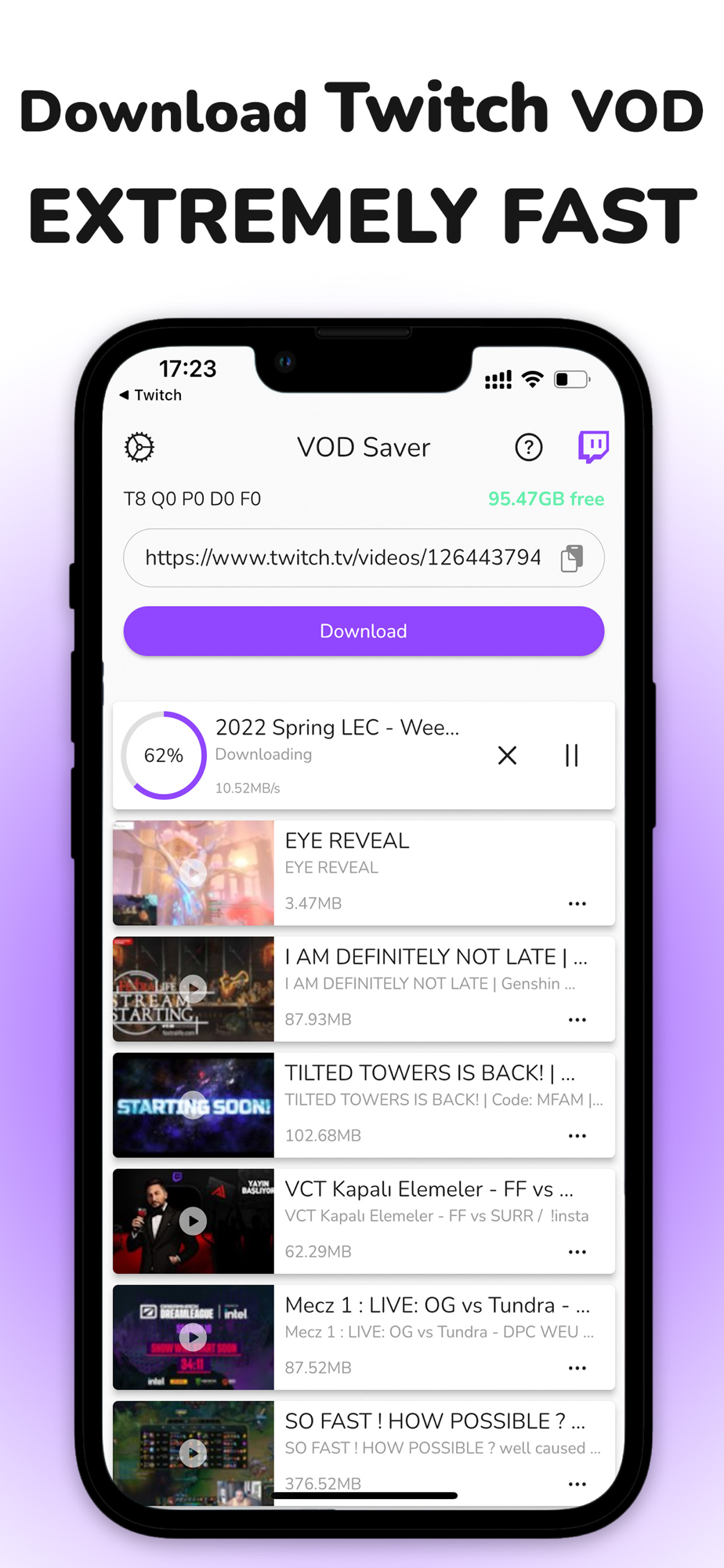 With VOD Saver for Twitch, you can save VODs and Clips to your device for free and watch them offline whenever you like.