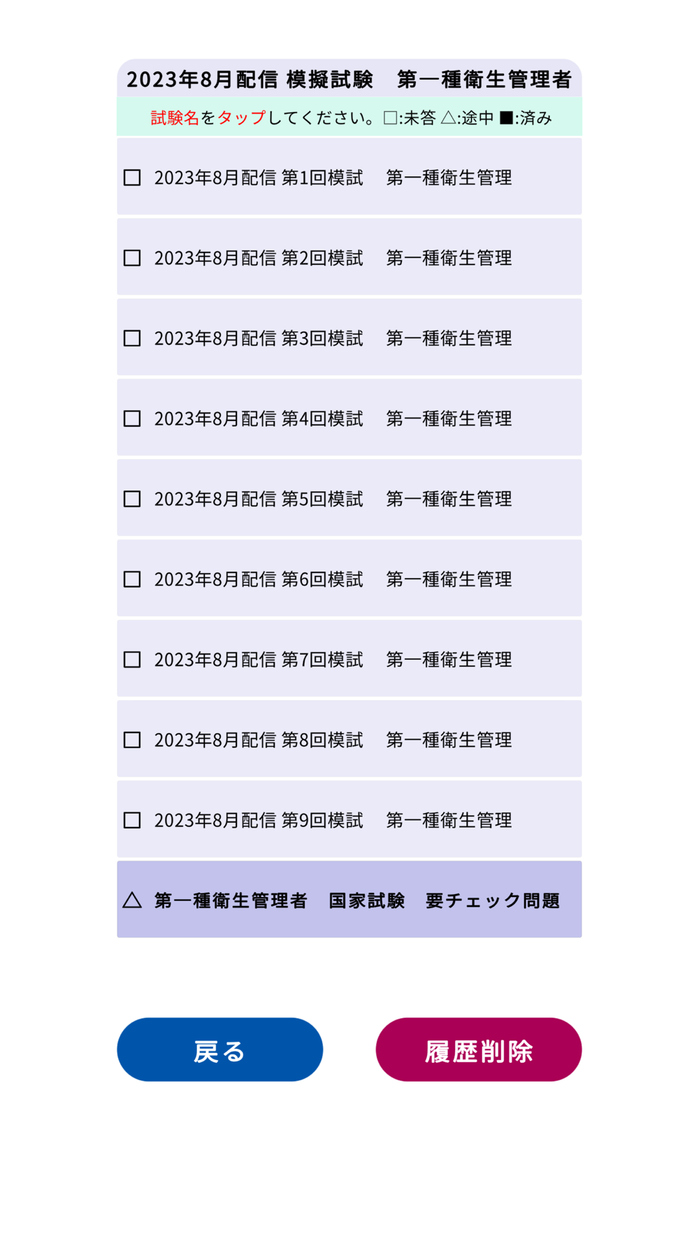 ②正解・不正解の履歴が残ります。