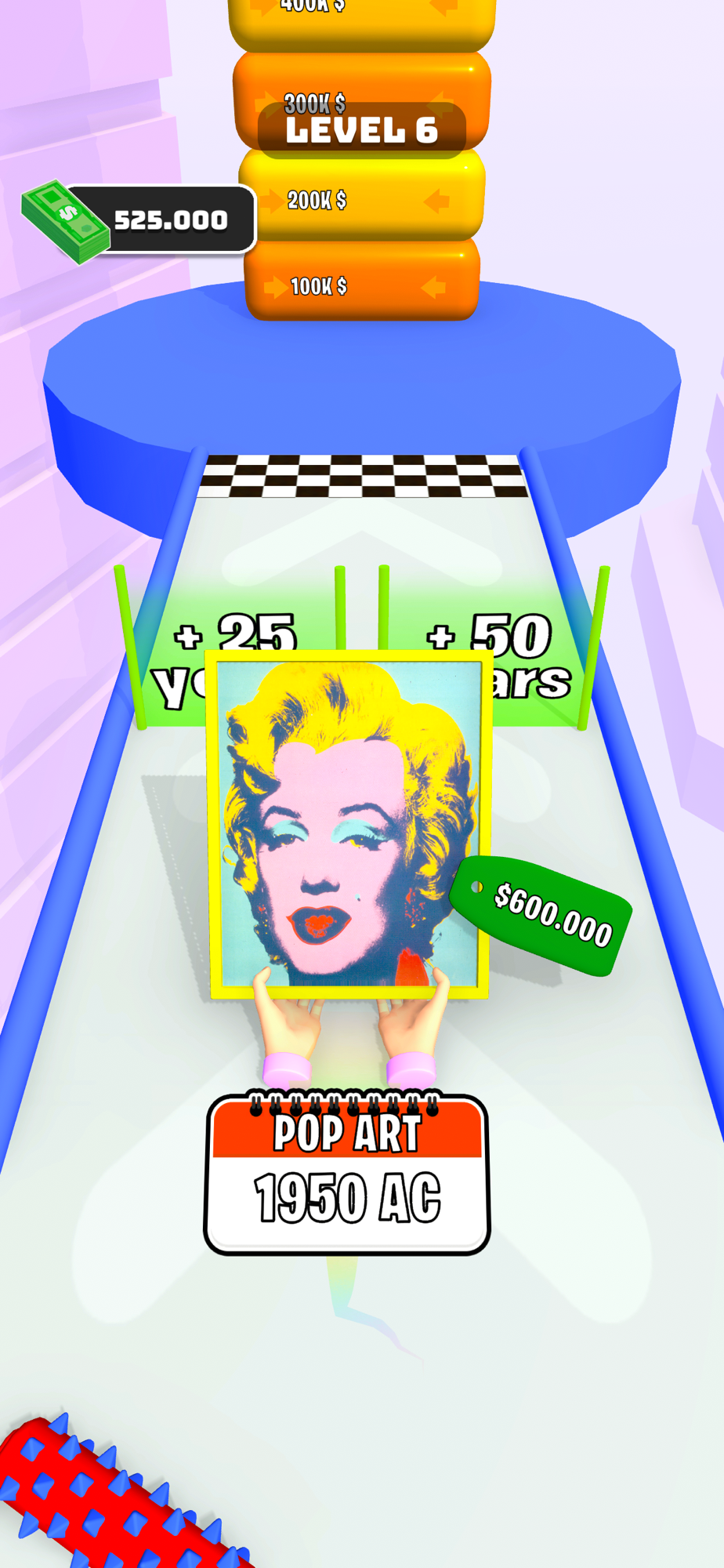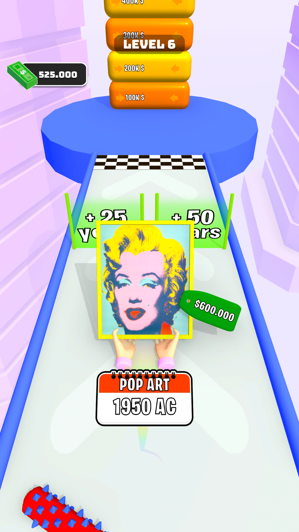 Move left and right to evolve your art and sell it at the right point to make lots of money!