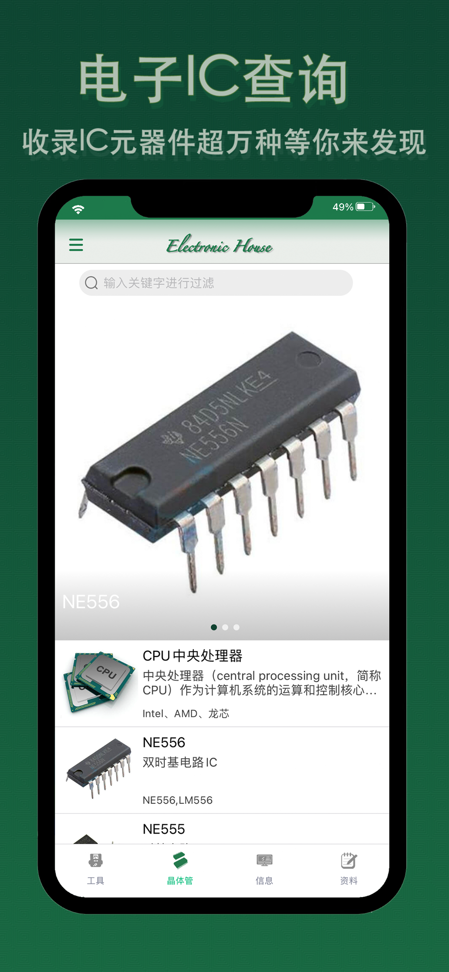 本软件目的是为了帮助各类对电子元件信息有查询需求电子爱好者/维修人员/学生/科研人员等提供一个便捷平台,充分利用现代网络技术快速查询了解电器电子元件信息/电子电路信息提供便利。