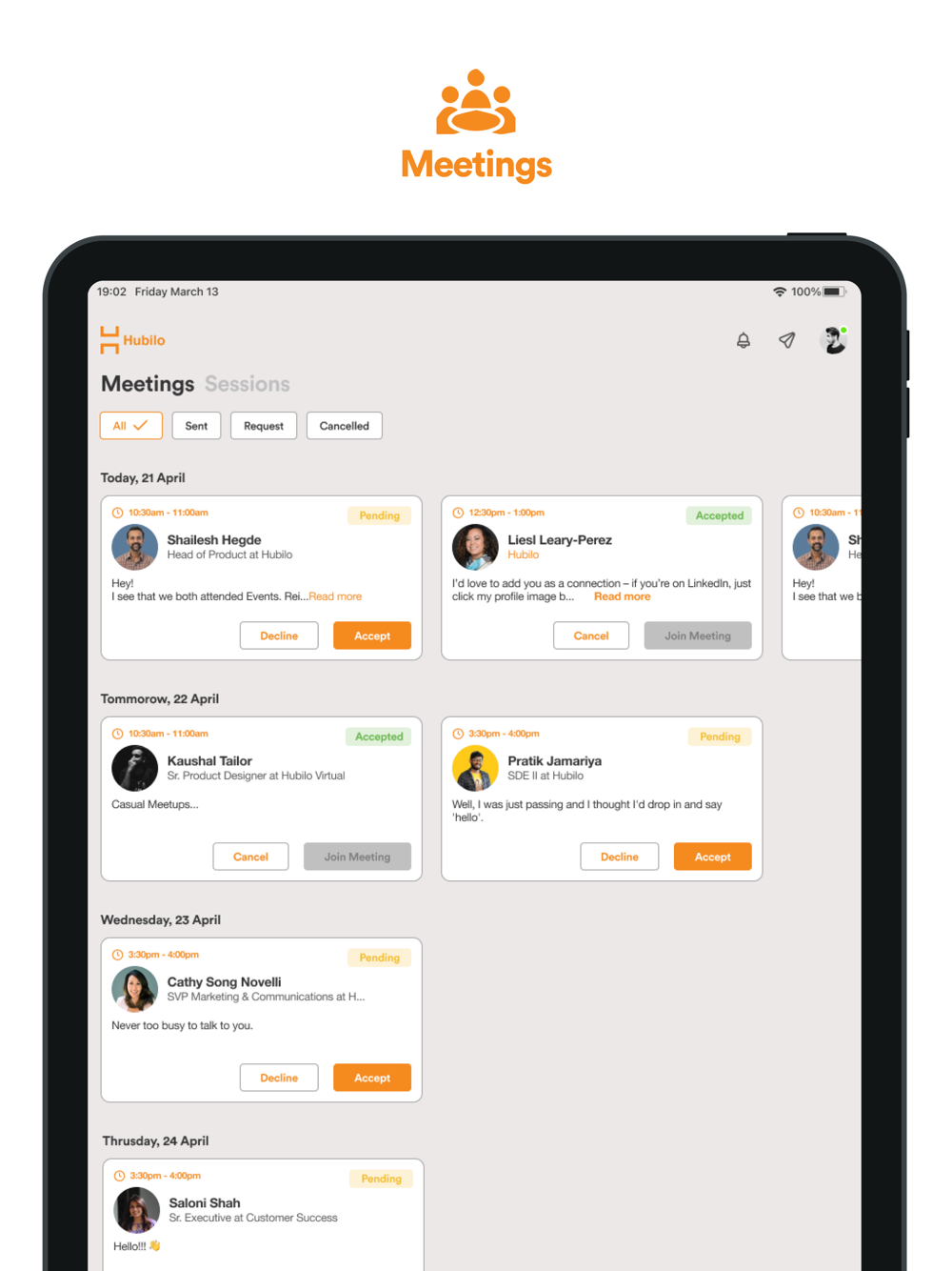 - Set up meetings with potential attendees (partners, speakers, industry CxOs) by using the chat feature.