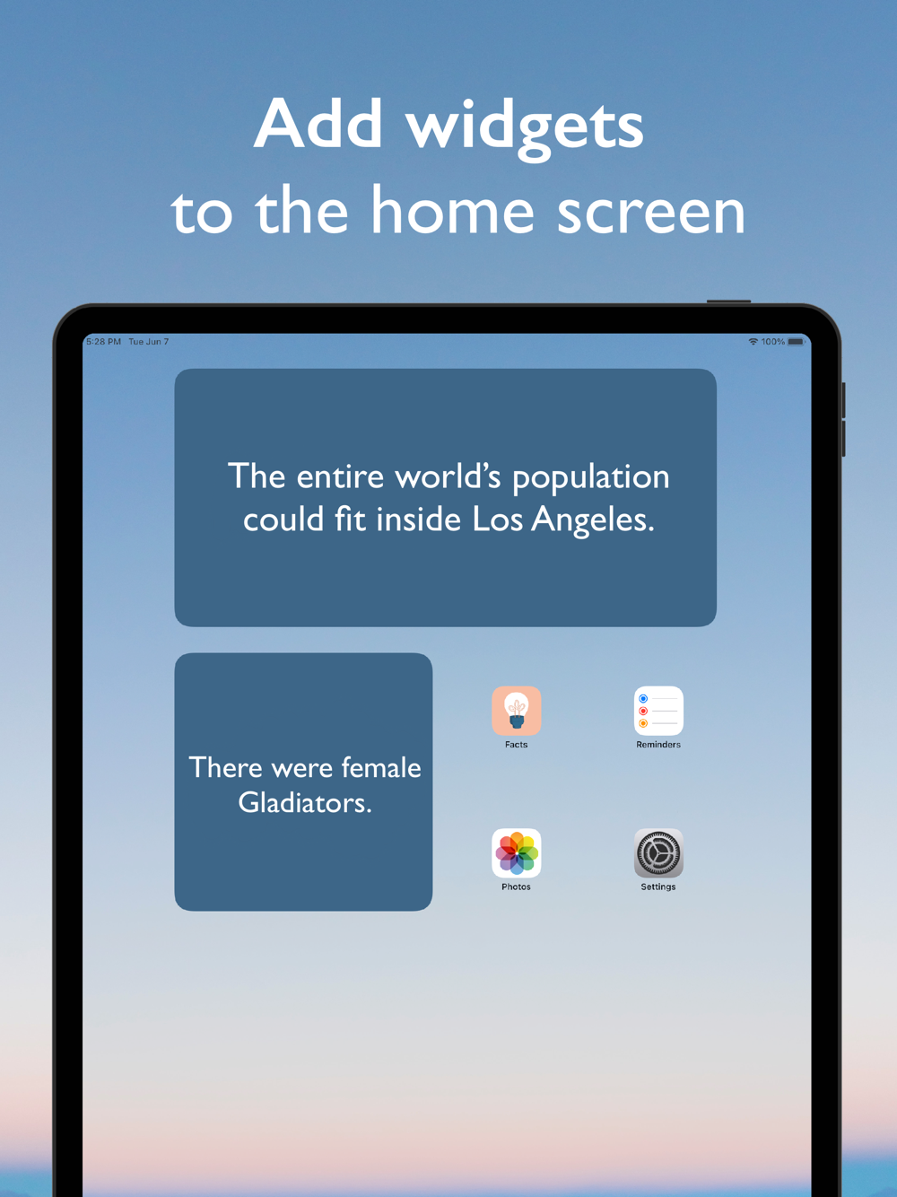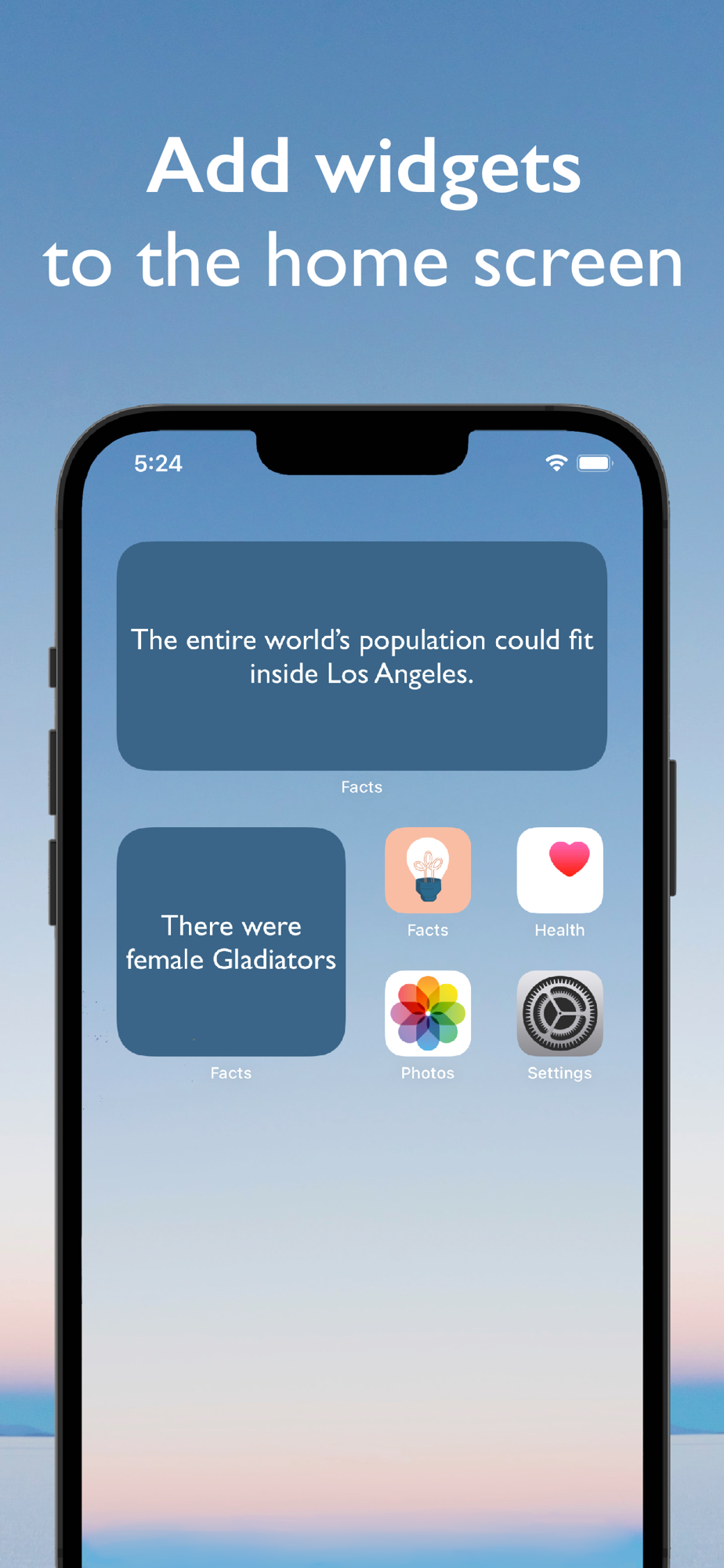 You can get your dose of interesting facts with the widget! Simply put a widget on your home screen to access it anytime!
