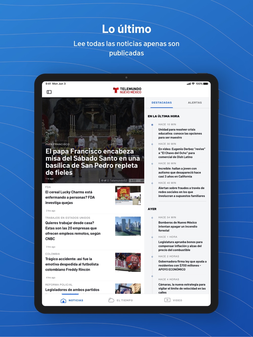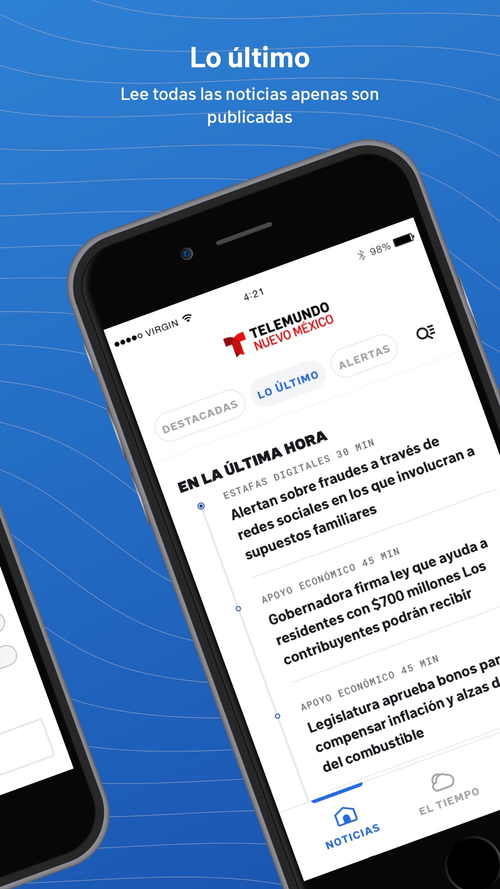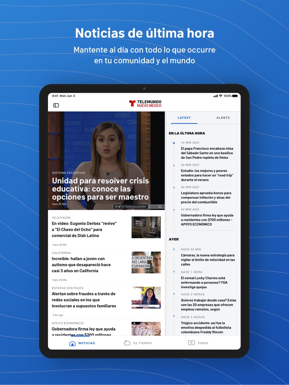 La app de noticias y del tiempo de Telemundo Nuevo Mexico te conecta con los mejores contenidos locales, los pronósticos del tiempo más exactos, noticias de última hora, TV en vivo, y periodismo investigativo.