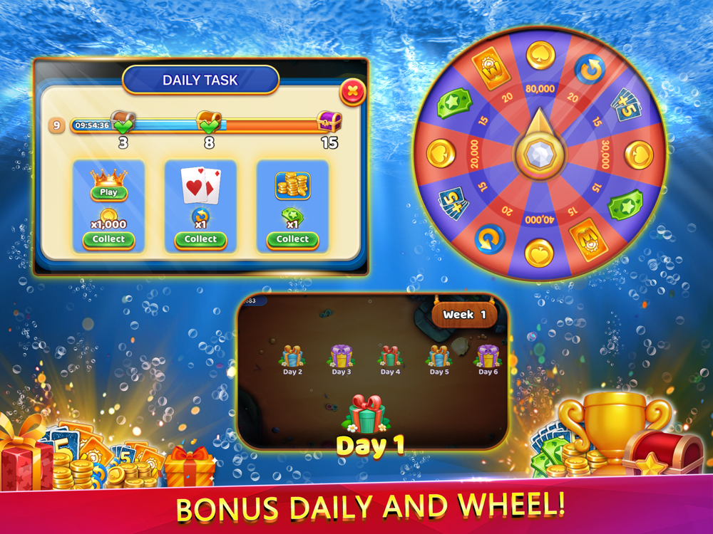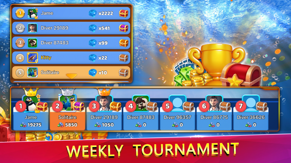 - Unlock more unique aquariums for your lovely fish friends in Solitaire Ocean
