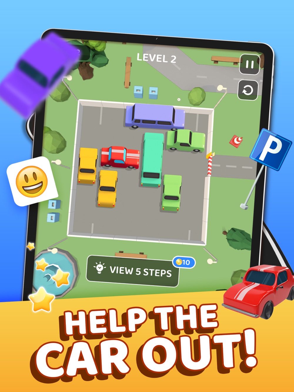 Parking Jam: Mega escape is an addictive and brain-burning puzzle board game. Many cars are parked randomly in the parking lot that may cause serious traffic jams. How do you get out? As the level increases, the difficulty also gets harder. Unprecedented challenges are waiting for you! Are you ready?