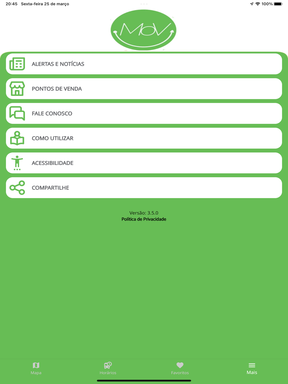 Seja bem-vindo ao MoV Paulínia, o aplicativo que apresenta informações em tempo real do transporte público da cidade de Paulínia, São Paulo