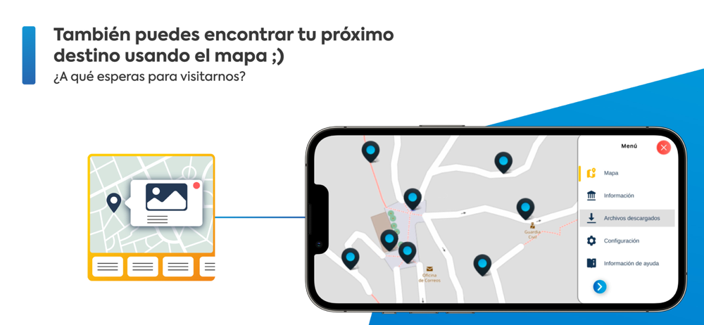 La geolocalización que incluye la aplicación CultuAR hace que no se necesite conexión a internet y generes 0 impacto en el Medio Ambiente generando un Turismo Responsable. La información podrá ser ofrecida a modo visual y/o audiodescrita fomentando el Turismo accesible. ¡Ofrece a tus visitantes una experiencia única e inolvidable 100% accesible y respetuosa con el medio ambiente!
