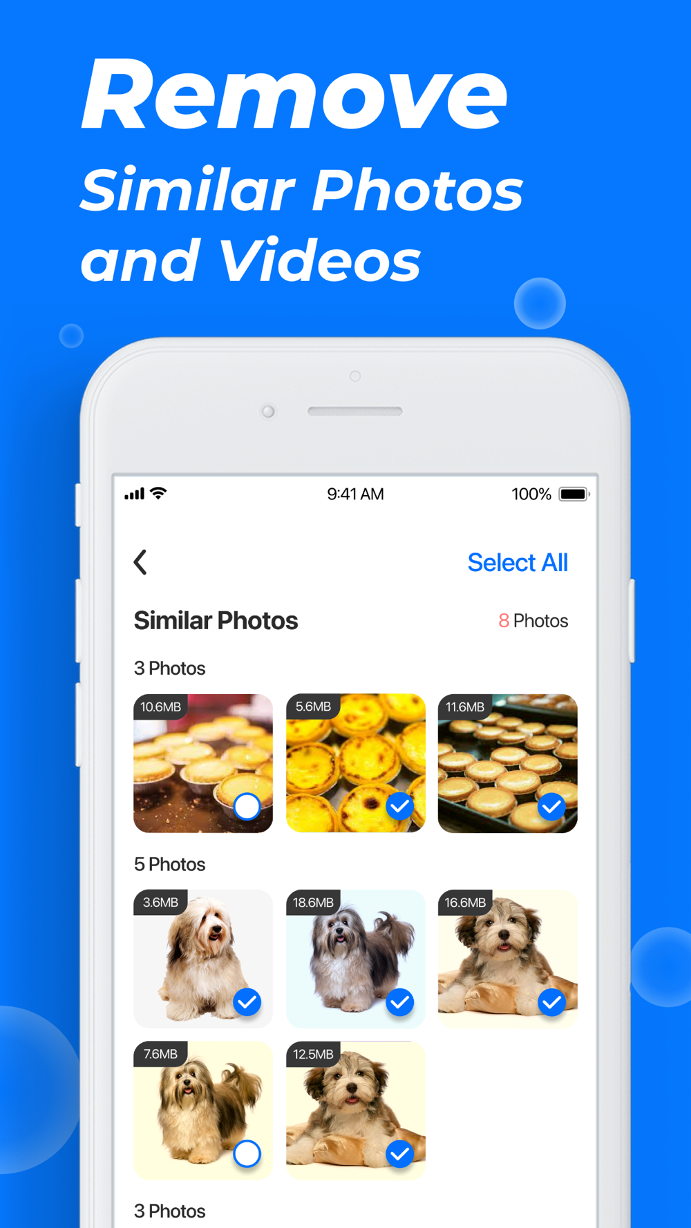 - Find all similar and duplicate videos and delete them with one click