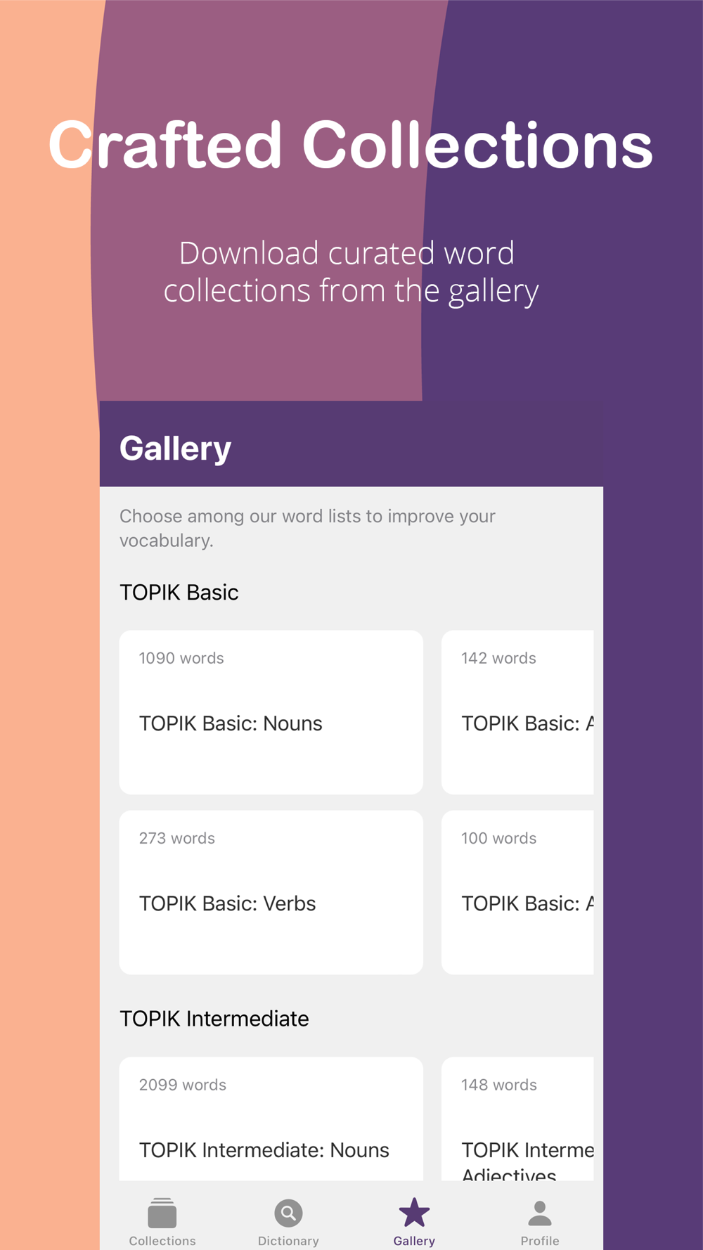 - Create your own word collections and keep your learning organised.