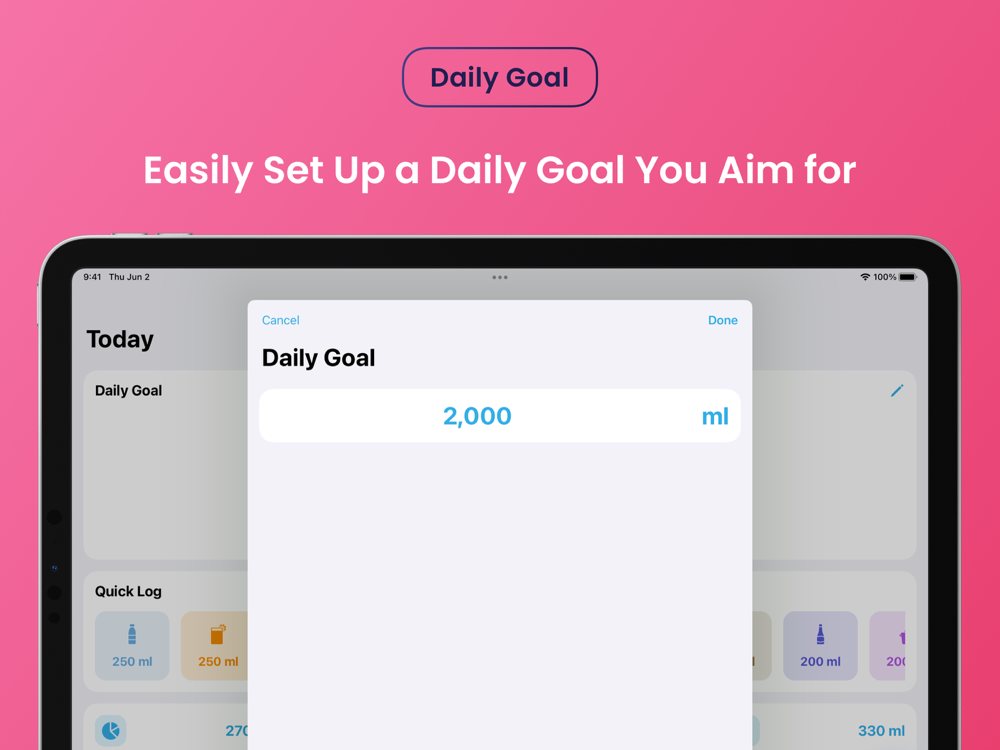 - Ability to set up a daily goal you aim for and track its progress in the app