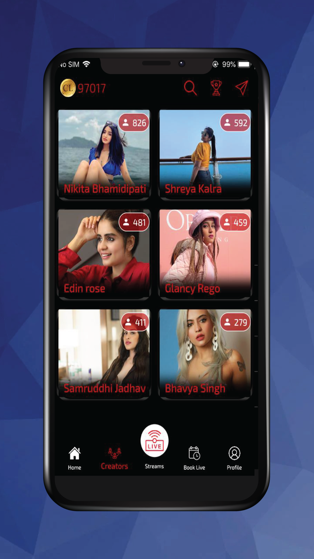 Watch live singing and dancing 24/7. Interact with creators through live chat, audio and video call.